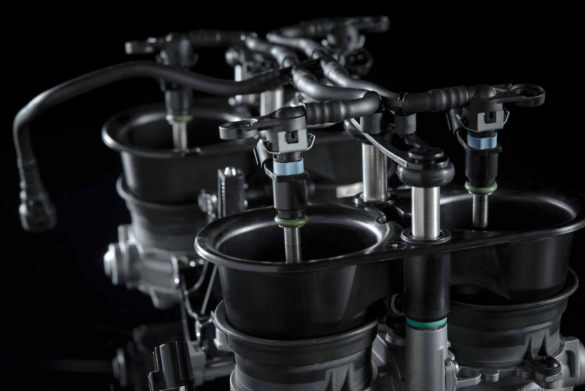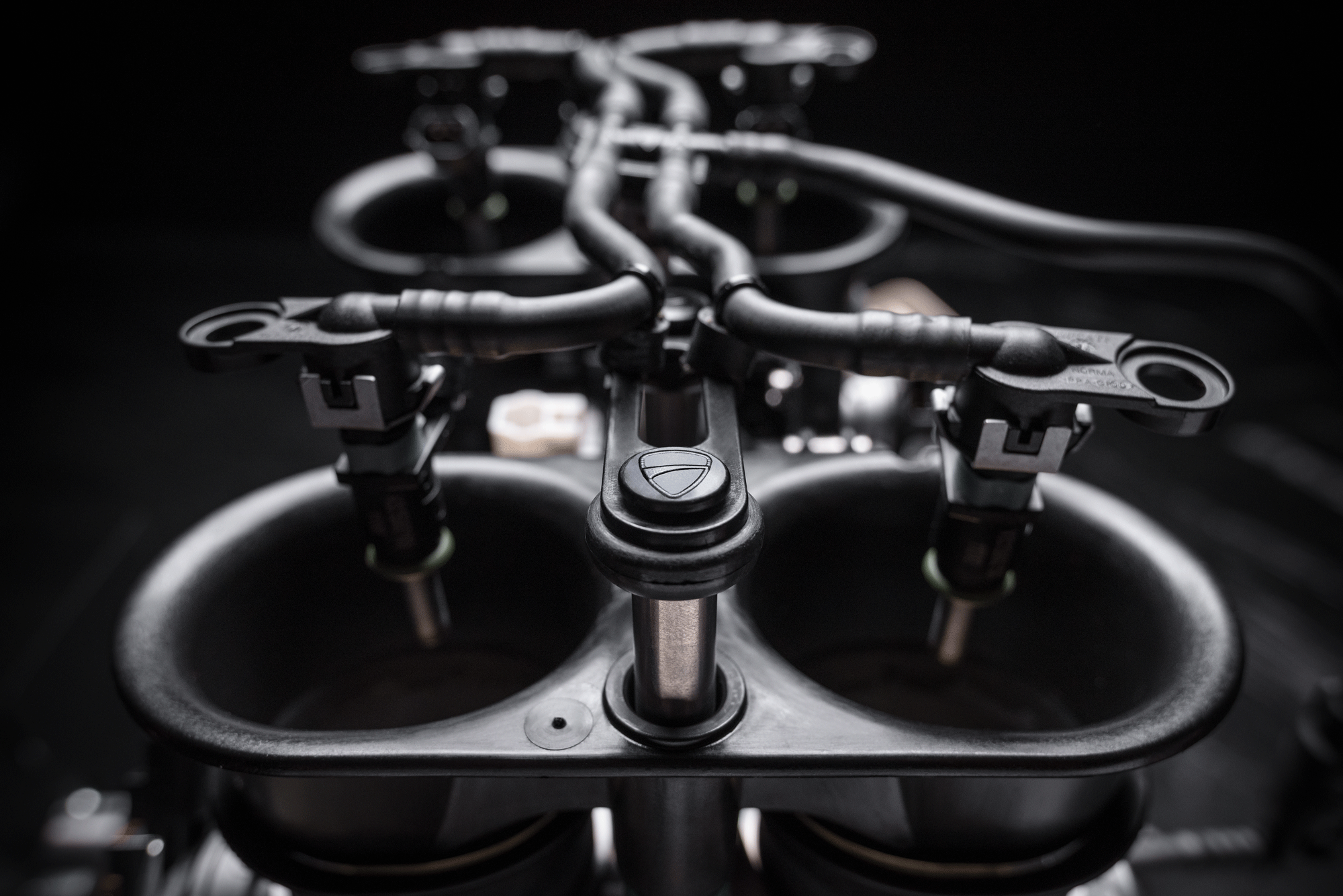 Тысяча сто кубических сантиметров, 210 л.с. при 13 000 об/мин и 120 Нм при 12 250 об/мин – таковы объём и пиковые показатели нового итальянского двигателя. Фирменный десмодромный газораспределительный механизм, разработанный Фабио Таглиони в 1954 году и усовершенствованный Массимо Борди в 1987, ставший визитной карточкой компании, был доведён практически до совершенства. Результат трудов налицо – двигатель гоночного Desmosedici GP 17, на базе которого был изготовлен новый мотор, способен раскручиваться до 20 000 об/мин.