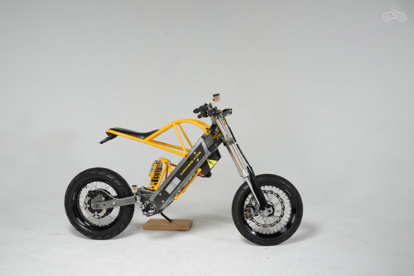 Изготовив каркас байка, Алан установил спереди перевёрнутую вилку от кроссового Suzuki RM-Z 250 2005 года, маятник и другие детали от Suzuki RM 125 1995 года, а также тормозную систему Brembo, облегчённый крепёж ProBolt, изготовленный из титана и алюминия, и тюнинговые органы управления. В результате всех манипуляций электроцикл стал весить почти 112 кг.