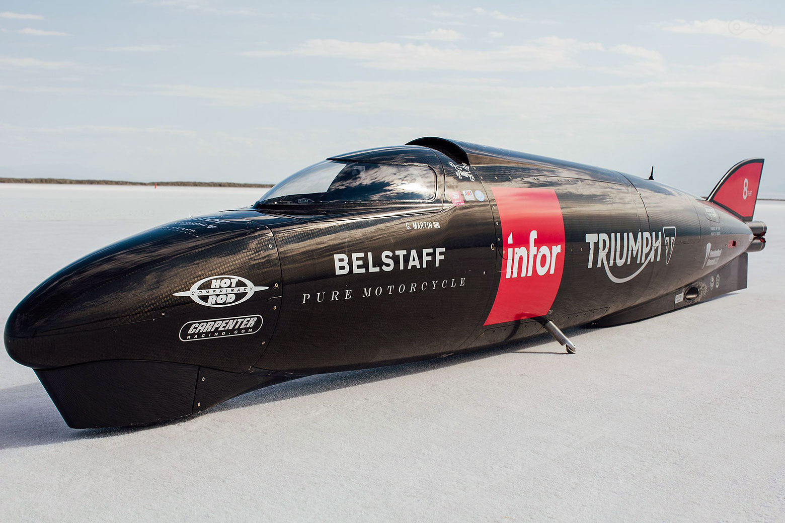 Известный мотогонщик Гай Мартин установил новый рекорд скорости для компании Triumph на озере Бонневилль. Во время тестовых заездов в преддверии мероприятия Bonneville Speed Week, английский пилот, управляя аппаратом Triumph Infor Rocket Streamliner, достиг скорости 441 км/ч.