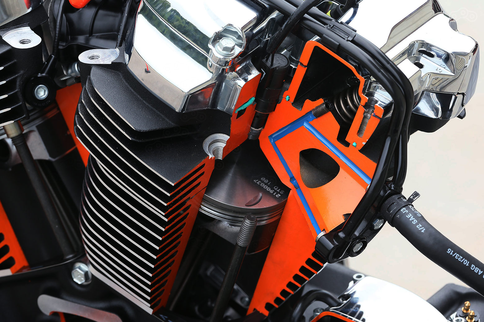 Несмотря на все технические откровения и соответствие экологическим нормам Евро-4, компании удалось сохранить визуальную и эстетическую составляющую настоящего «Харлея» в компоновке двигателя: угол развала цилиндров – «канонические» 45 градусов. При взгляде на новый двигатель, видны только мощные ребра воздушного охлаждения – весь «модерн» спрятан от посторонних глаз.