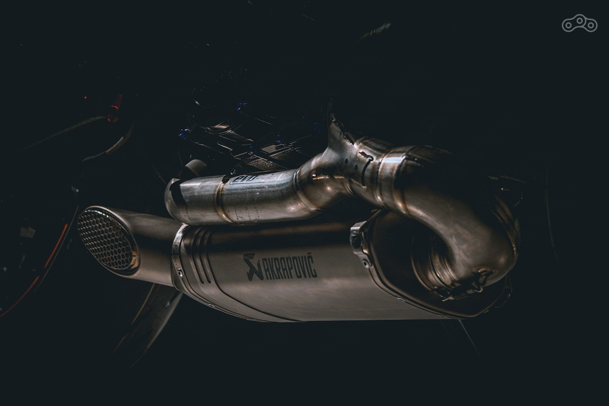 Также на мотоцикл была установлена производительная выхлопная система Akrapovich Evolution 4 с гран-прийным глушителем, а сложная электроника помещена в кафе-рейсерский «горб» позади водительского места. Сухие цифры ТТХ говорят о глубокой модернизации байка – 158 кг массы и 186 л.с. мощности вывели удельную мощность мотоцикла на новый уровень. На проект было потрачено в общей сложности около 400 часов, после чего его с помпой презентовали на выставке EICMA 2017 в Милане.
