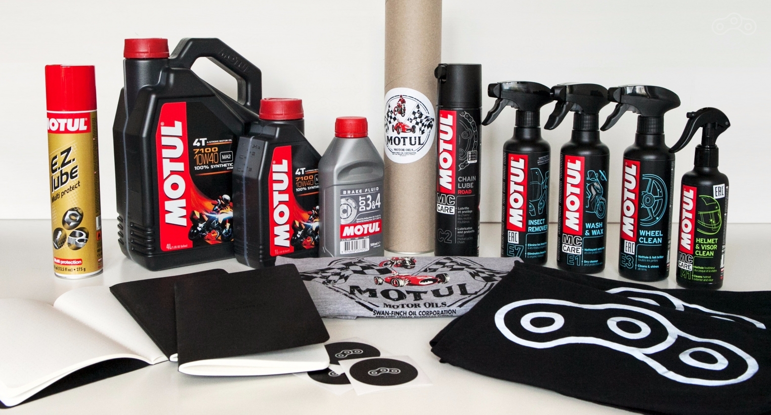 ** Motul 7100 10W40 1 л., EZ Lube 400 мл, Wash&Wax 400 мл, Wheel Clean 400 мл, DOT 3-4 Brake Fluid 500 мл