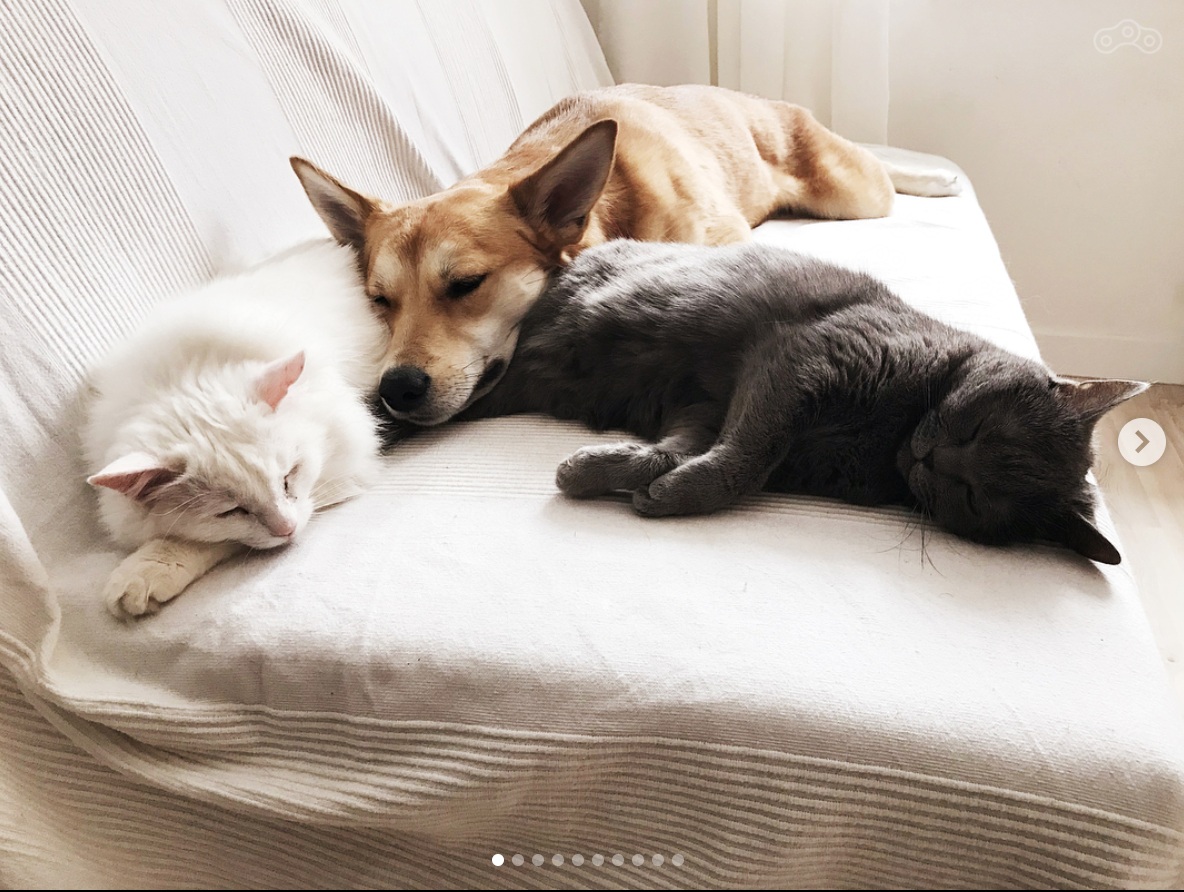 Третья собачка ещё была, но наша её невзлюбила до драк, пришлось отдать. Итого в среднем обычно 6-7 животных в доме, не считая полёвок).