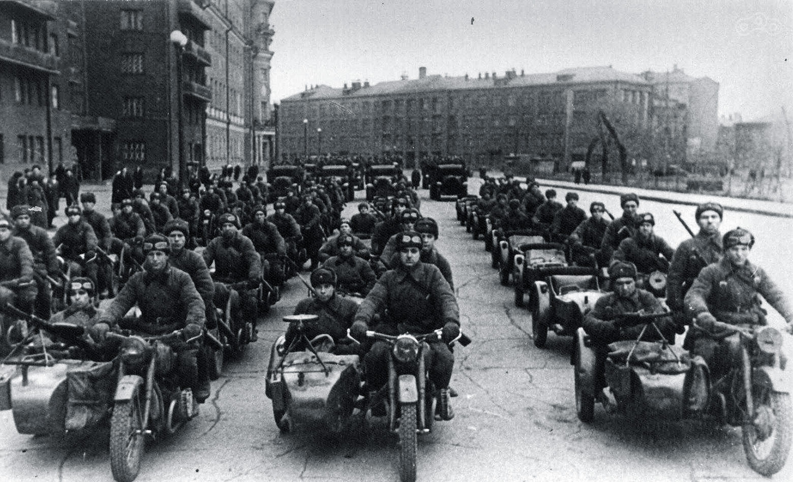 1. Первые мотоциклы М-72, изготовленные в Москве, отправляются на фронт. Конец 1941 года.