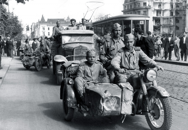 12. Мотоциклы воинов-освободителей на улицах Бухареста.