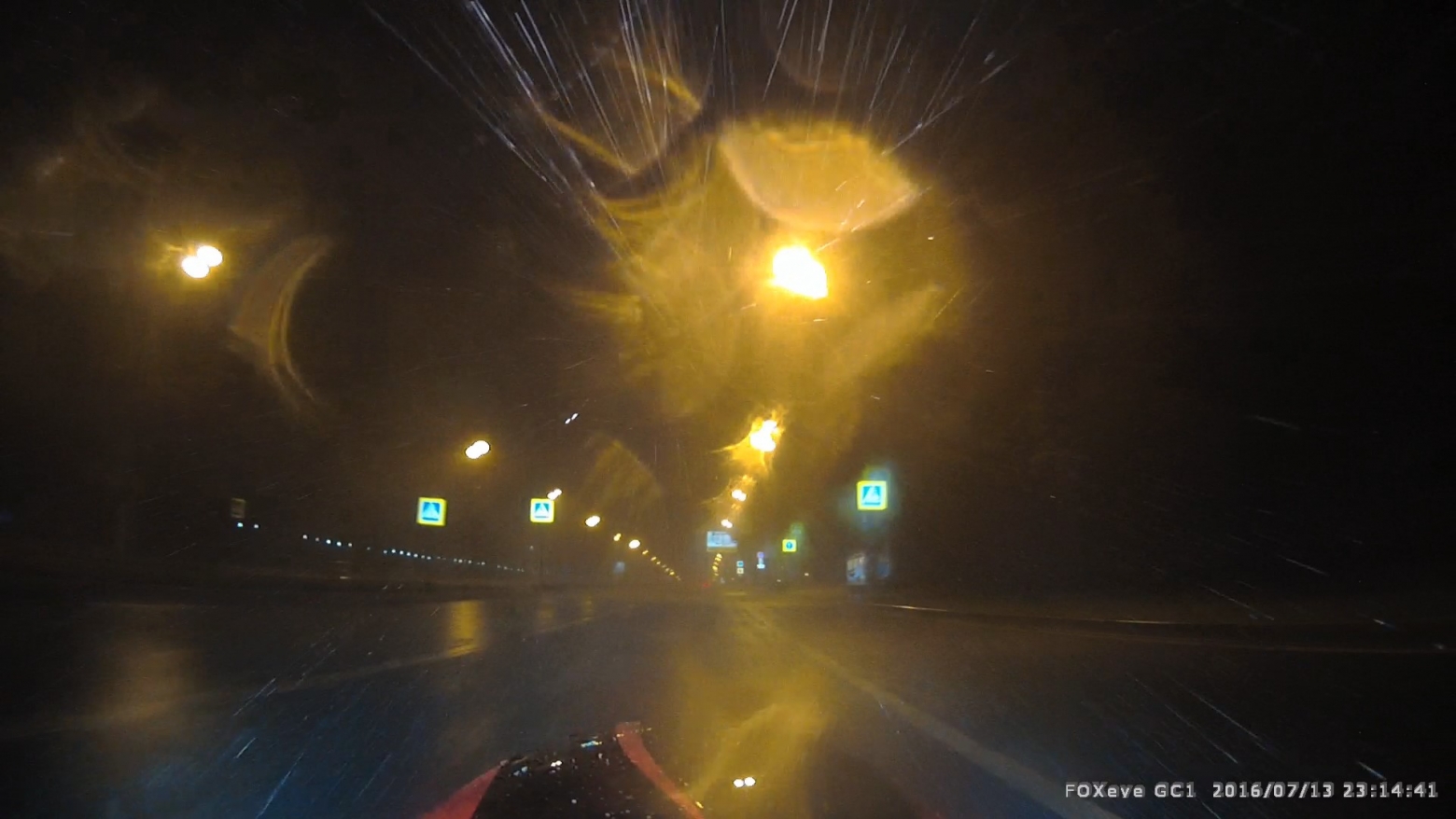 snt, верно, только это не гопра а FoxEye. Но да, как и любая широкоуголка она изгибает по краям. Я конечно глуп, но не настолько чтобы ехать 100 сразу после адового ливня)