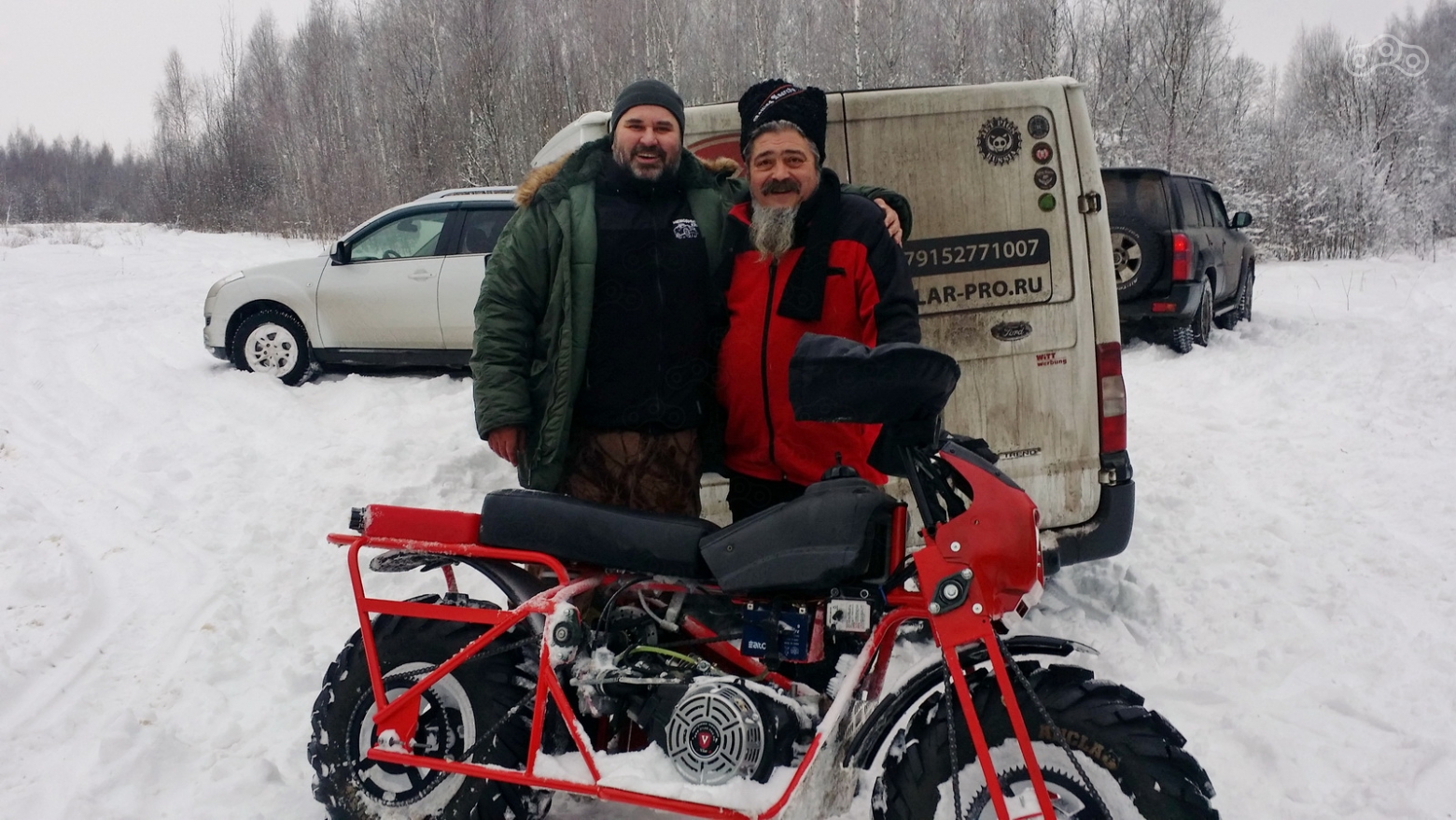 Вездеход сделан предельно просто и надёжно: подвесок нет, двигатель от генератора, две передачи, а единственный дисковый тормоз установлен не на колёсах, а на трансмиссии. Зато в самой голой комплектации «Тарусь» стоит всего 115 000 рублей, а в самой топовой, с двигателем Honda, фарой и электростартером 140 000 рублей. И не беда, что в виду отсутствия ПТС, на таком мотоцикле нельзя ездить по дорогам, зато его можно быстро разобрать и положить в багажник универсала.