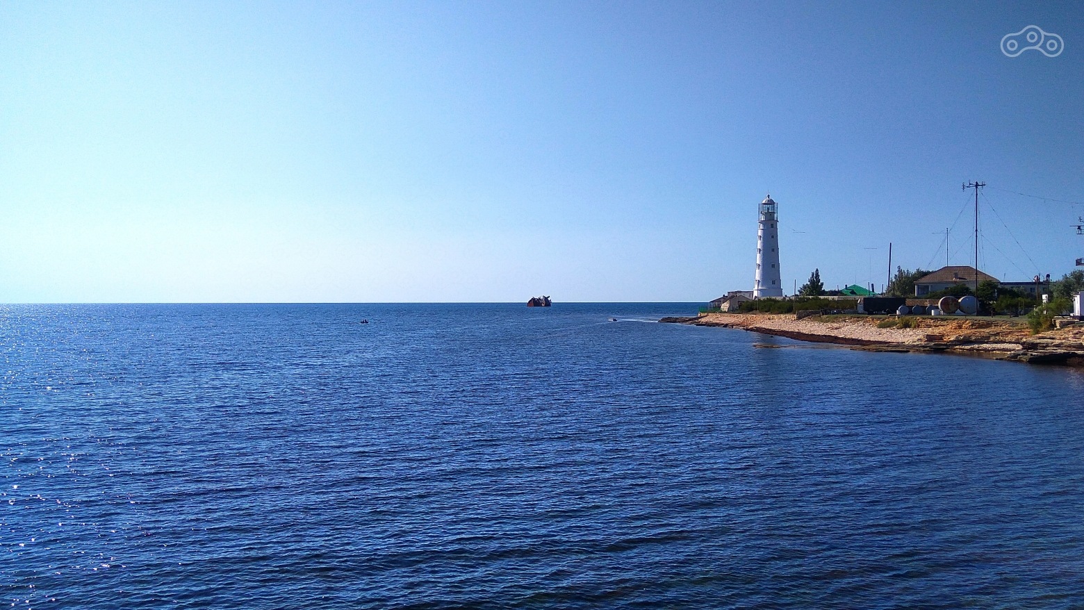 Недалеко от маяка виднеется затонувший корабль. Это российский сухогруз "Сириус", который налетел на скалы и сел на мель у берегов Тарханкута в феврале 2005 года, когда следовал из Ейска в Турцию. Никто из членов экипажа не пострадал, но в результате образовавшихся пробоин были затоплены машинное отделение и трюмы. Его частично разобрали, но его кормовая часть осталась на месте крушения.