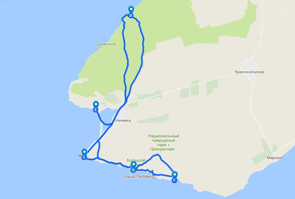 Добрались мы до мыса Тарханкут, когда уже солнце заваливалось за горизонт, а это означает одно - пора разбивать лагерь. В поисках подходящего места мы отправились вдоль высокого берега моря в сторону Атлешей (* - на тот момент, непонятные слова на карте).