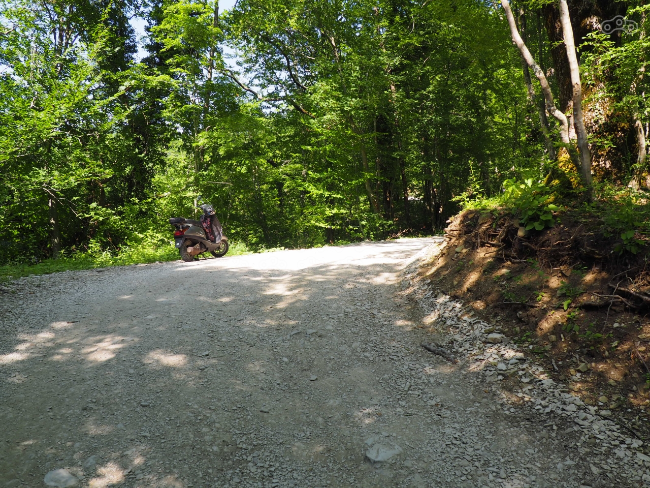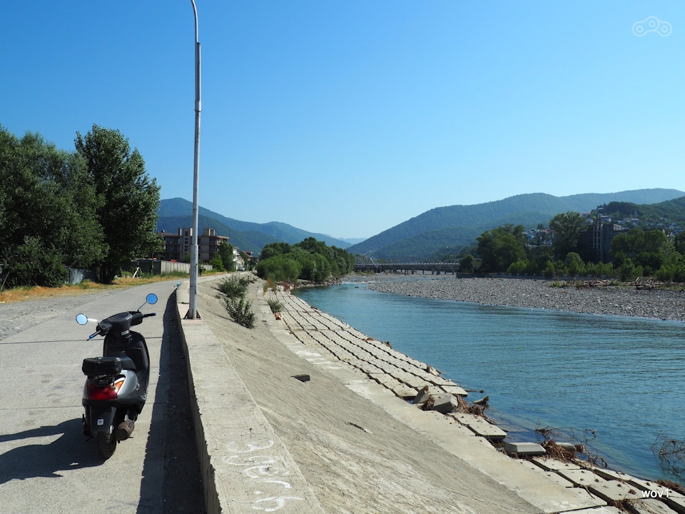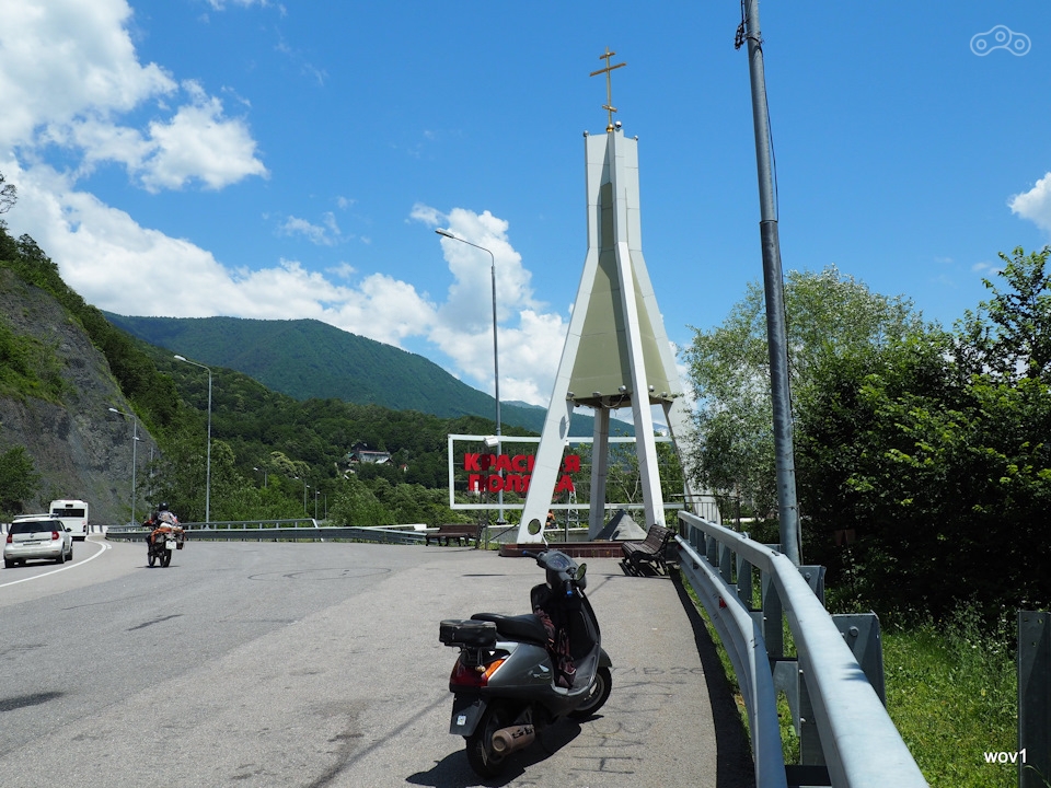 Как бы сам этот маршрут я не раз проделывал ещё в 1993-м году, когда работал механиком-водителем в велокоманде ЦСКА. Помнится однажды после гонки в Горячем ключе, наши спортсмены своим ходом доехали до Кудебсты . И это на велосипедах. А тут скутер . Педали то крутить не нужно, да и скорость выше.