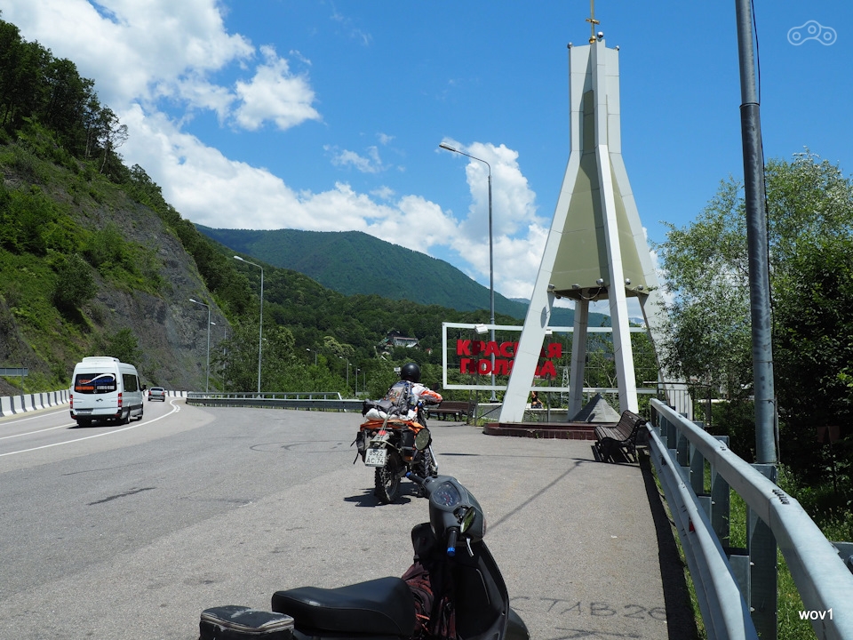 Перед Дагомысом мне от жары начало плохеть и я заехал на заправку и в ихней кафешке перекусил посидев немного под кондеем. Полегчало . Как то в такую жару у меня появилась крамольная мысль махнуть мимо Сочей на Красную поляну, а уж на обратном пути заехать на Ахун и прехать обратно через Сочи.