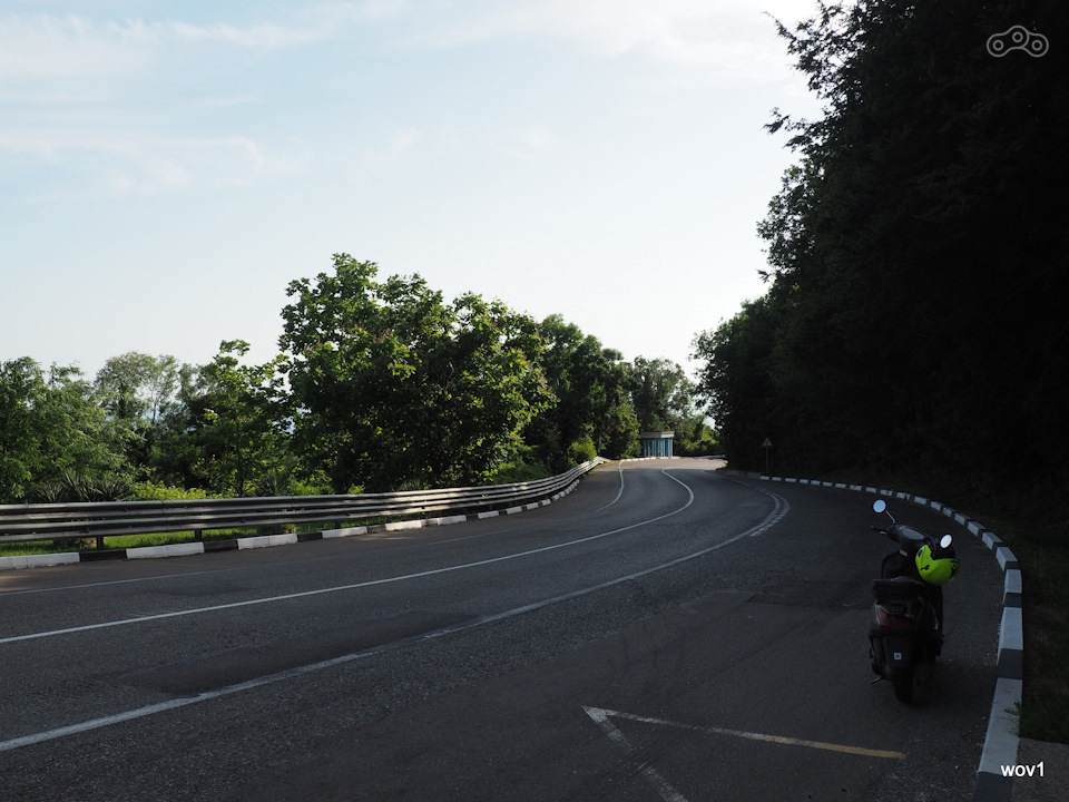 Попрощавшись с повеселевшим я покатил дальше . После Туапсе меня ждали мои любимые серпантины, ради которых всё это и затевалось. Лида радовала ровной работой мотора, постоянным моментом на подъёмах и плавными торможениями двигателем на спусках. Тормозами я пользовался в редких случаях, заправляя Лиду в повороты с изрядным креном . Единственное что портило праздник, так это подножка . Она постоянно цепляла асфальт в поворотах, издавая душераздирающий скрежет . Наверное ещё и эффектно искрила, но я этого не видел.