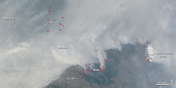 Лето 2010 го года выдалось жарким и дымным . Жара в москве стояла под 40 .Но жара это малое зло . Всё заволокло дымом от горящих торфянников . Вот карты со спутников августа того года .