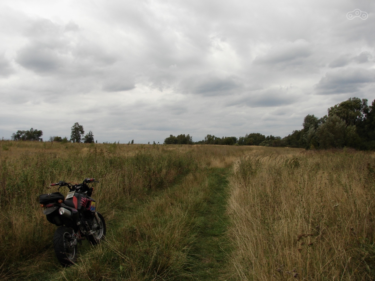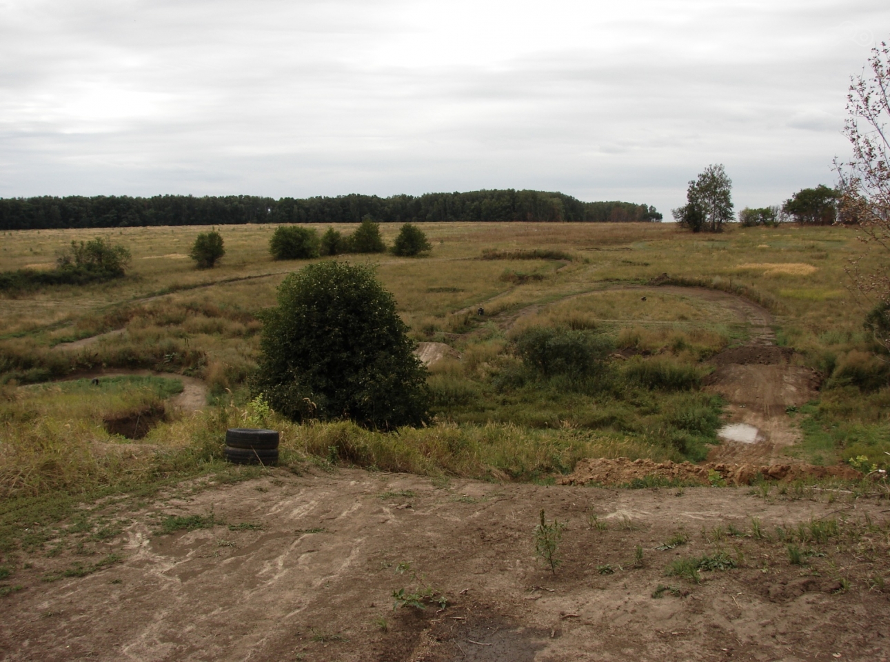 Но пока стоял и разглядывал трассу сверху оврага заметил неподалёку накатанную в траве восьмёрку . Вот это мне и надо .
