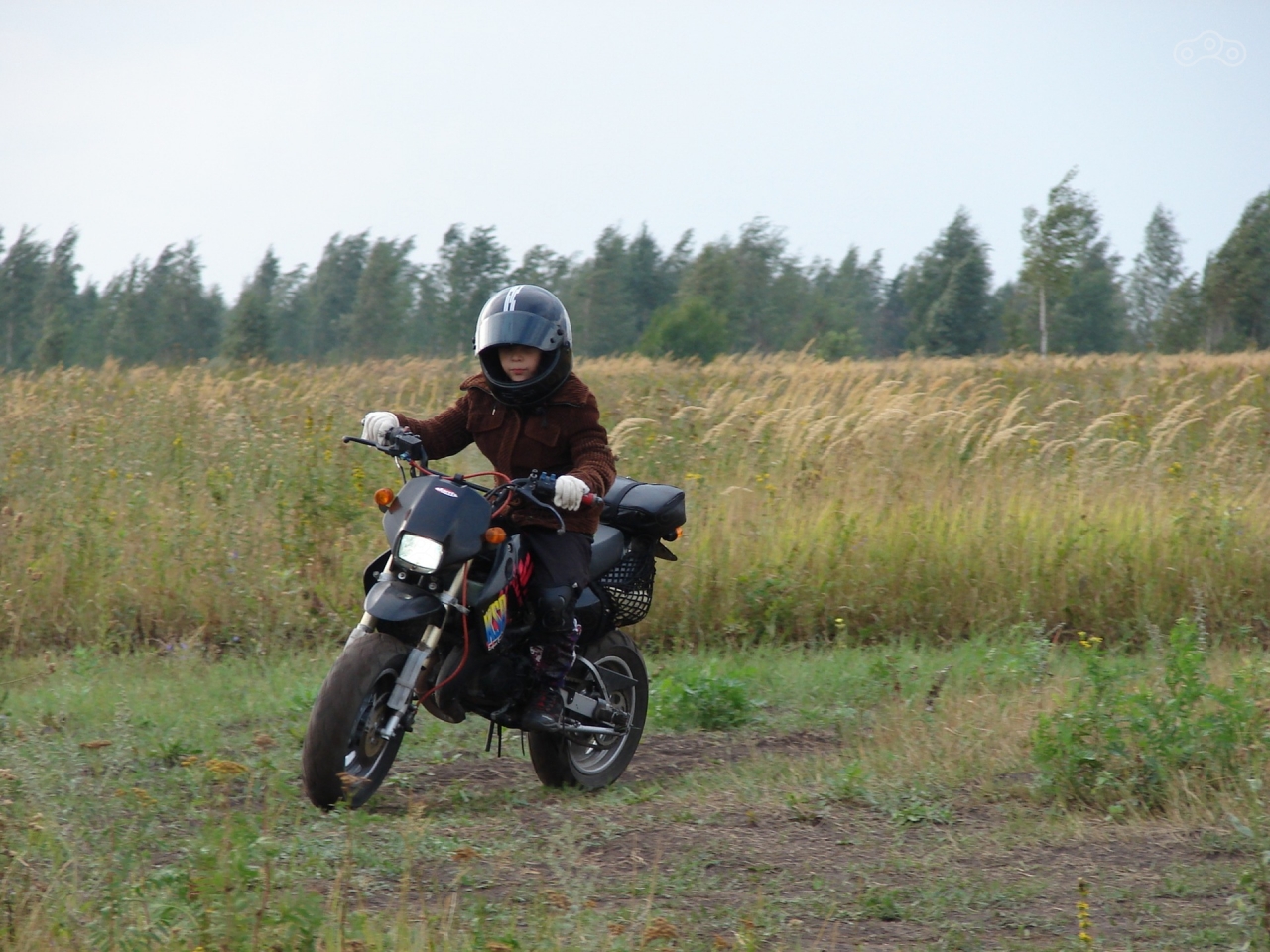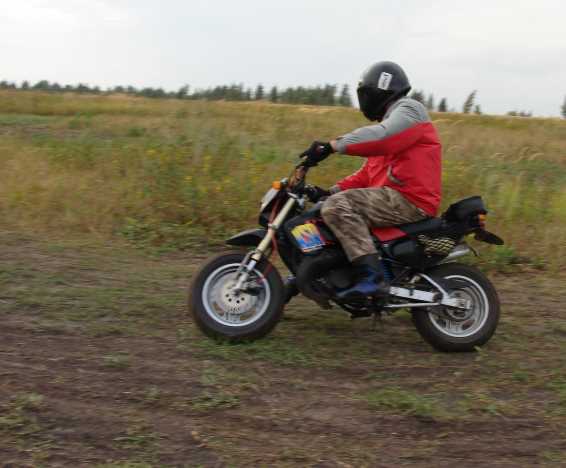 Теперь наоборот . После долгих уговоров вежливыми печатными словами , сынуля , таки , сел на мот . Он как бы к тому времени уже имел несколько кубков и прочих наград за свои достижения в чемпионате по прокатному картингу , да и опыт вождения различной малокубатурной техники у него тоже имелся , но что то в те дни он чудил и просто ну никак не хотел гонять на моте .