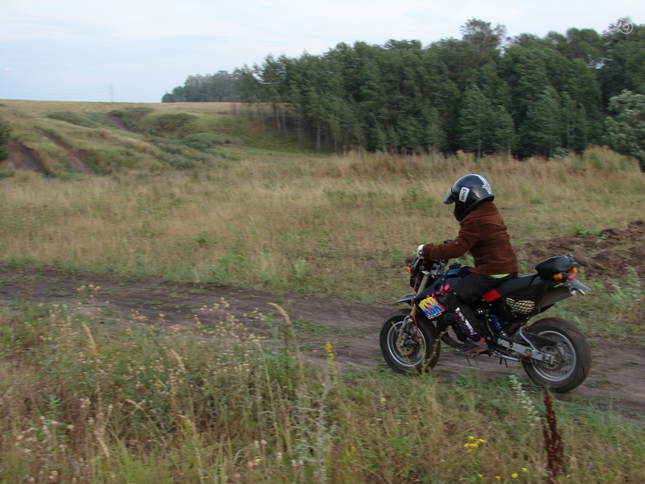 Пообедавши покатили вдвоем на трассу . От дачи километра два по полям .