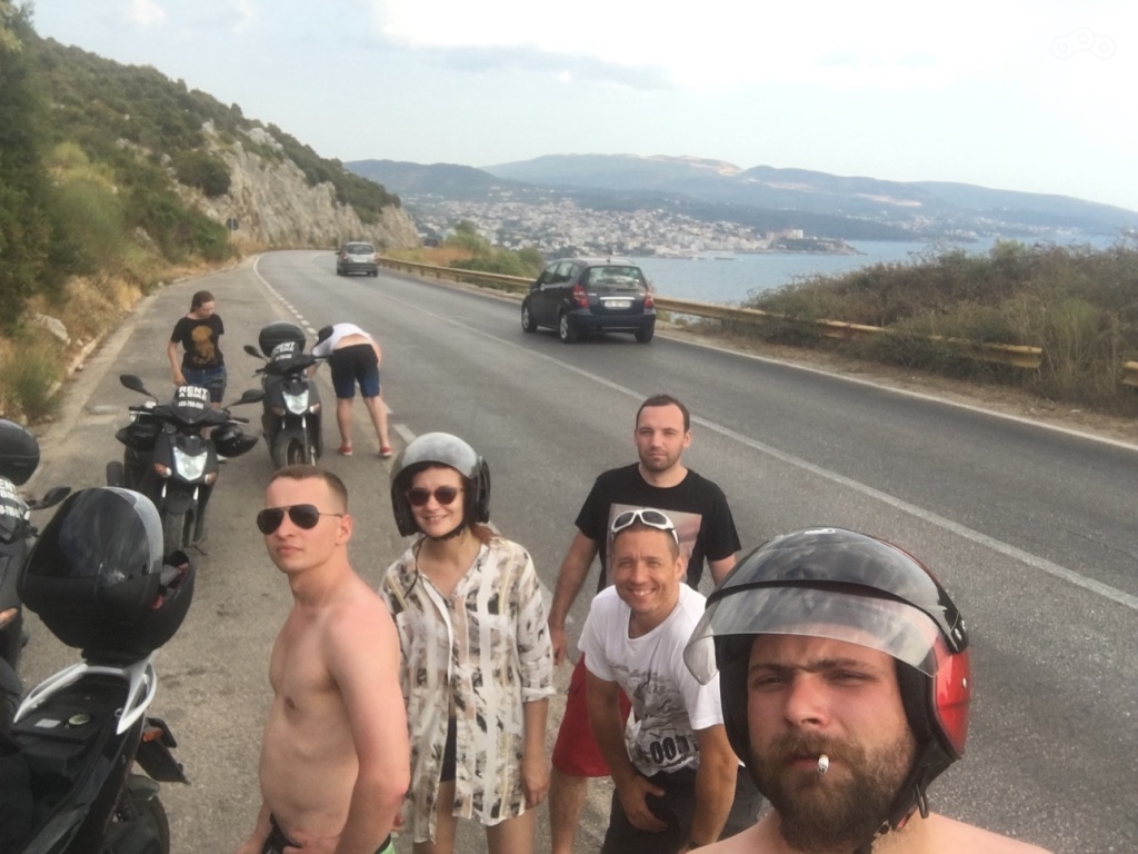 Мы же, объездив все вышеперечисленные маршруты на машине, выбрали противоположное направление, отправившись вдоль побережья в сторону Албании на так называемый черный пляж. Маршрут в один конец выходил чуть больше сотни километров, что для компании из трех «полтинников», 125 и 200-кубовых скутеров было идеальным вариантом, который можно было без труда одолеть за день.
