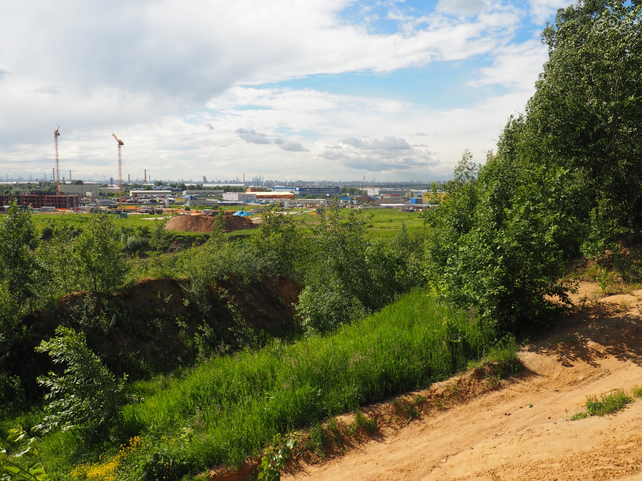 А вот это фото историческое . Когда то лет двадцать назад на месте где стоят краны был карьер . Глубиной ниже чем те два здания что видны слева . Ибо они возведены на пригорочке . А вот карьер начали активно засыпать ТБО в начале 2000-х . Тут и руины домов с улицы Гурьянова в Москве , которые были взорваны с людьми . И мусор после урагана , который посносил не мало всякого . Потом на это место аварийно сел (( упал) военный вертолёт и потом несколько лет чем то сильно воняло .