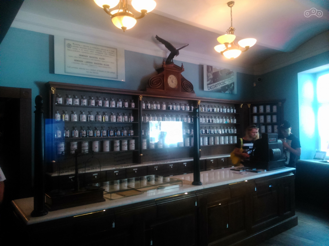 После этого отправился в аптеку «Под орлом». Краковское гетто было создано в 1941, для отделения ещё способных работать евреев от тех, кто подлежал уничтожению. Тадеуш Панкевич единственный, кто смог получить разрешение на открытие аптеки в Гетто. Деятельность его заведения спасла массу евреев от смерти. В аптеке, помимо интересной экспозиции непосредственно фармацевтического направления рассказывается о жизни евреев в самом гетто и о работе Сопротивления. Экспозиция сделана максимально интерактивно: везде размещены экраны, на которых участники событий рассказывают о жизни при нацистах, многие детали экспозиции можно брать в руки, разрешается трогать безопасные вещества... Очень интересно, но мало.