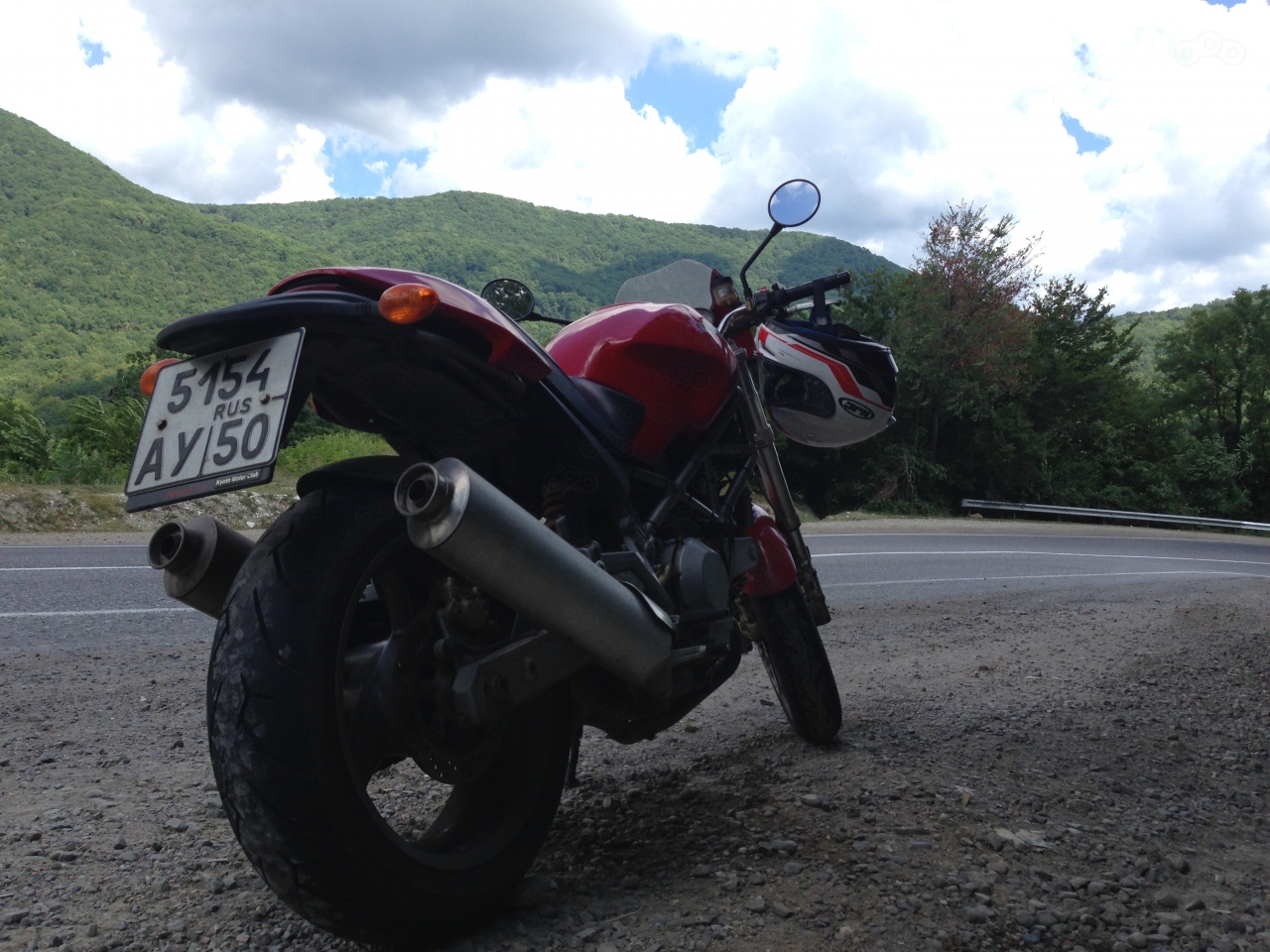 Начался серпантин (это на обратном пути я понимал, что это не серпантин ни какой, а так, дорога немножко виляет). Я решил поиграться в поворотах — и чуть не вылетел с дороги. Наклонил сильнее обычного, и мот стремительно начал резать радиус, и я прямиком поехал на две ямки у бровки асфальта. Отложив изрядную стопку кирпичей, я осадил себя и запретил себе подобные фокусы.
