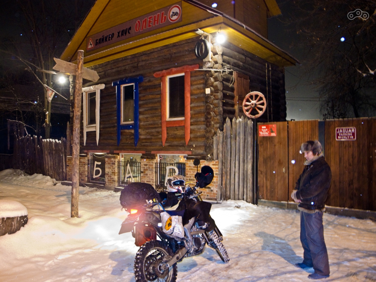На моём пути находился город Ростов Великий, и очередную остановку я решил сделать в местном мото-баре Байкер-Хаус «Олень». Заведение, как оказалось, ещё официально не открылось, однако Сергей, владелец бара, принял меня как дорогого гостя и угостил горячим чаем, не смотря на своё неважное самочувствие, за что ему огромное спасибо. Мы около часа поболтали, я отогрелся и выдвинулся дальше. Сергей пригласил заехать ещё на обратном пути.