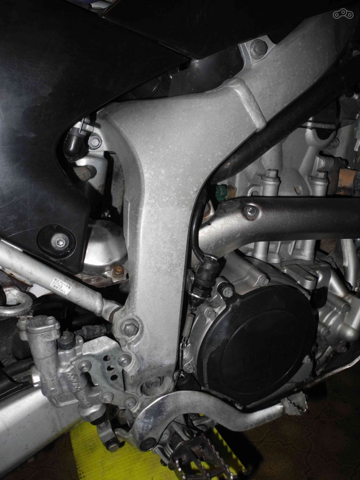 Перед тем как закатить, я, как обычно, помыл мотоцикл на мойке (без пены). На фото видно, как ярославская соль разъела слой грязи на раме. Боюсь себе представить, что с ним было бы, если б я его не помыл.