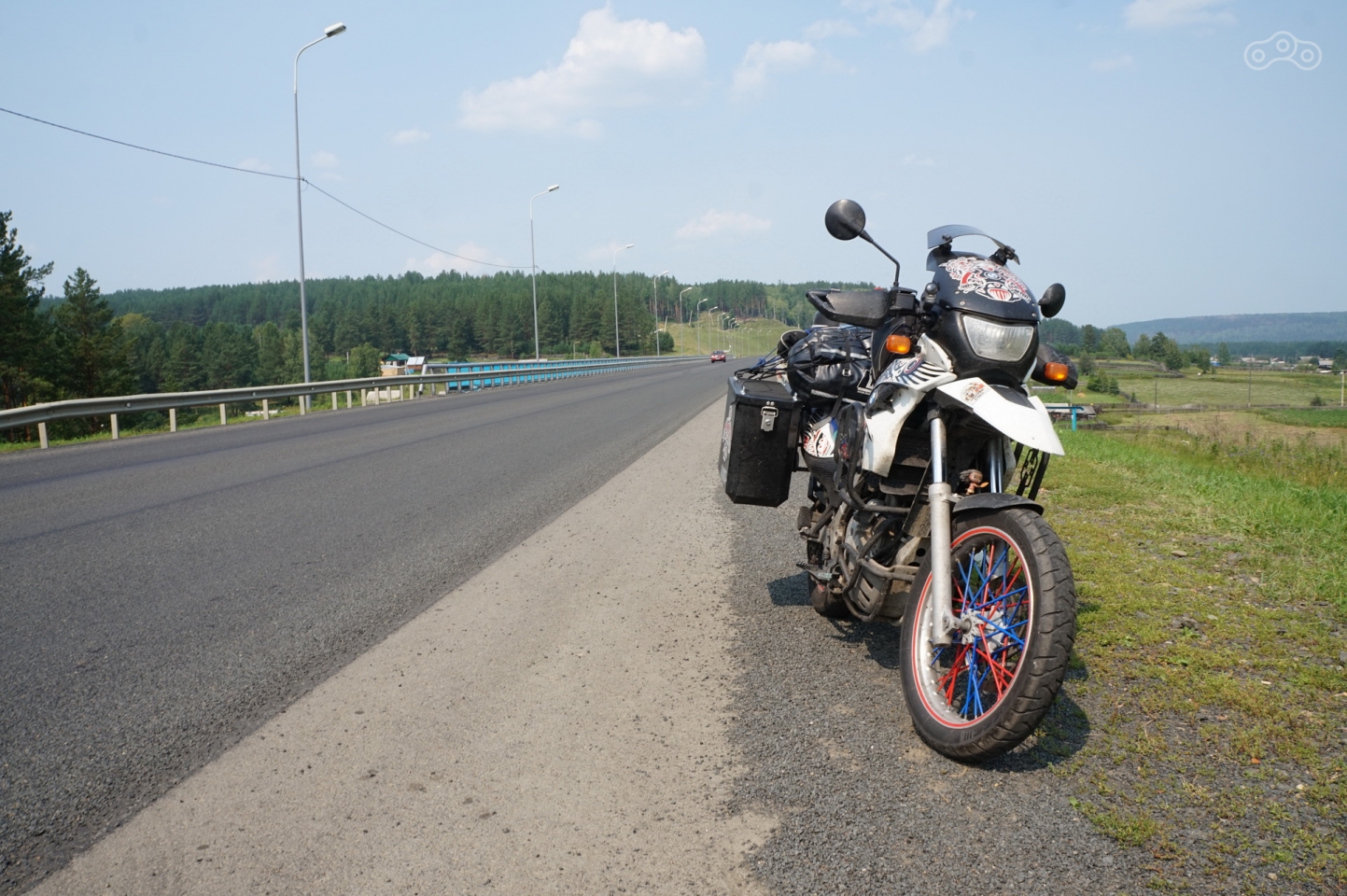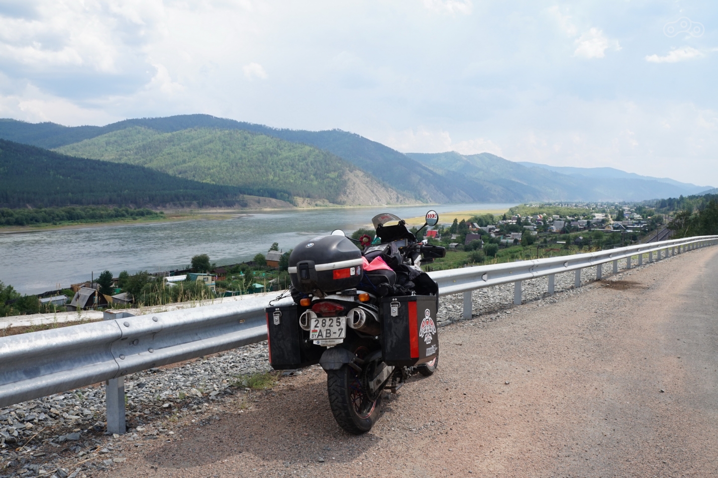Россия начинает укутывать своей душевностью, простотой. Отдельно хочется сказать про названия – они потрясающие! Я встречала деревни Хомячки, Чертов кулич, Клубничный, Веселая и много-много других. Незаметно пролетели 800 км до Красноярска. Здесь встречаюсь с Кириллом, у которого уже остановился питерский путешественник Димка. У нас с ним у обоих есть значки «Слабоумие и отвага» - у меня на мотоцикле, у него на куртке. И мы естественно решили подтвердить эти звания, решив полезть посмотреть на Красноярские столбы поздно вечером, так как на подъемники мы опоздали. Я в платье, без фонариков, не имея ни малейшего понятия, как туда добраться ползем вверх по сопке. Крапива, какое-то болото, камни, а на самом верху непролазная чаща. Сели, отдохнули, решили, что дальше не пройдем и пошли обратно, довольные и счастливые. Зато спалось хорошо, мертвым сном после такой физ. разминки.
