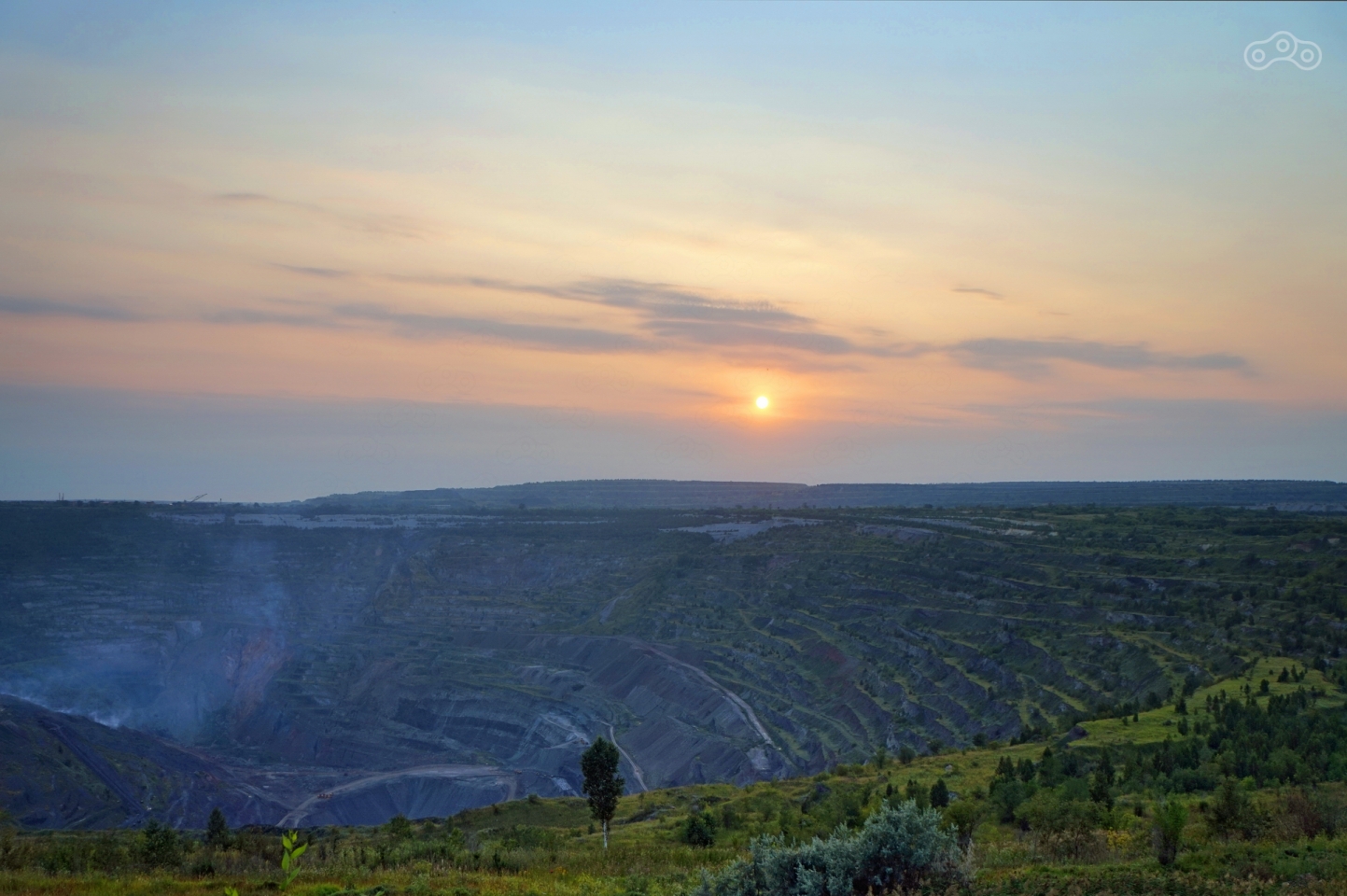 Здесь на байкпосте меня встречает Саша и Виталик, с которым судьба нас свела несколькими месяцами ранее в моем родном Минске. Виталя поселил меня в гостишку и мы отправились исследовать Коркинский разрез –самый глубокий в Европе и второй в мире угольный разрез. Сейчас его глубина достигает уже 500 метров и продолжает увеличиваться. Проектная глубина – 610 метров. Диаметр воронки разреза – полтора километра. Сначала немного поплутали по окрестностям, потом встретили местного гусевода, который провел нас к разрезу. Обалдеть, какой он огромный! Белазики, ползающие по разрезу кажутся маленькими жучками. Первый раз такое видела. Масштаб впечатляет.
