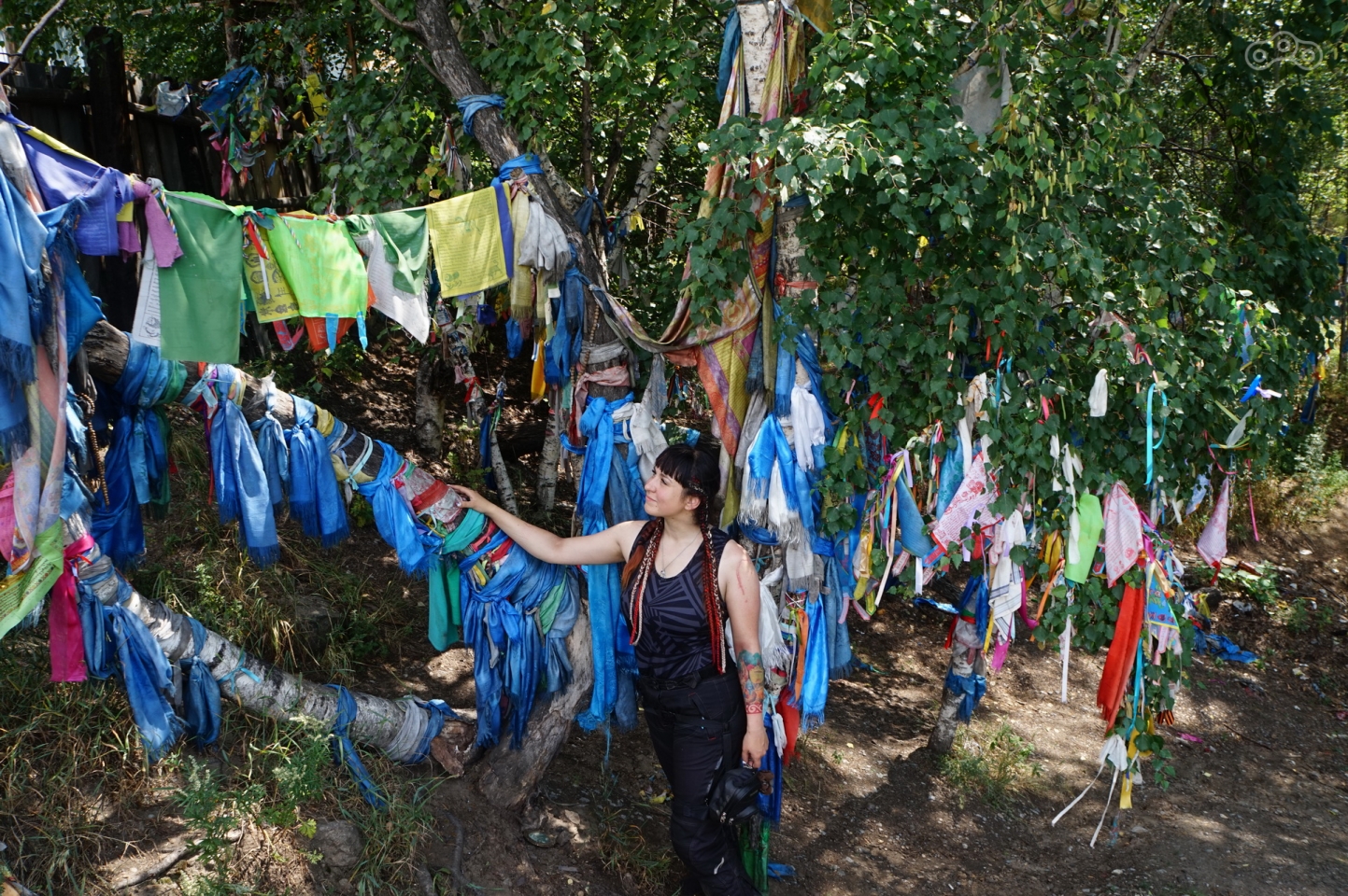 После Байкала природа меняется до неузнаваемости. Бурятия – один из самых поразивших меня регионов России. Разноцветные сопки, озера, реки, железная дорога вдоль трассы, другая религия и культура. Остановилась у священного места Обоо, увидев издалека разноцветные ленты. Говорят, что здесь живут духи, а еще можно покрутить барабан и очистить карму – покрутила, конечно.