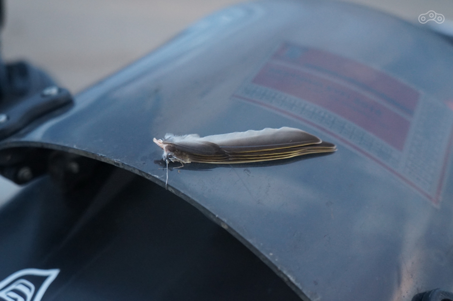 Ближе к вечеру совершила непреднамеренное убийство живого существа L Внезапно прямо в середину визора прилетает шар из перьев. Удар был сильный, но дергаться не стала. Остановилась на ближайшей заправке, на ветровом стекле Генри болталось перо. Сняла, положила в траву, расстроилась, но ничего не поделать.