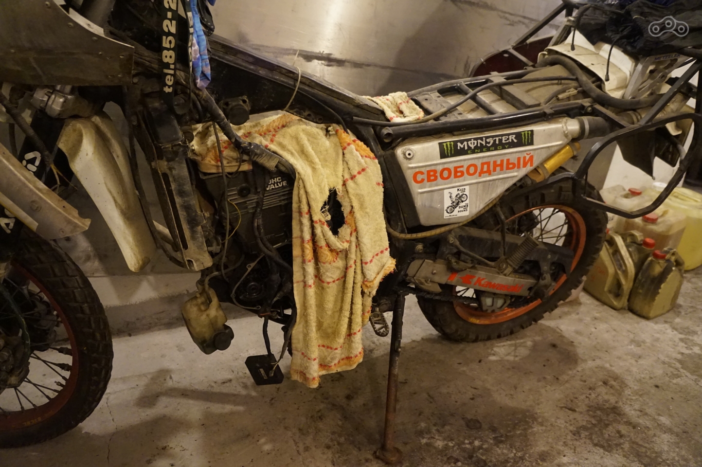 Сережа – легендарный человек. Через его дом пролегал путь сотен мотопутешественников, кругосветчиков со всего мира. Именно он сделал коляску-холодильник для Олега Харитонова, а еще возродил мотоцикл погибшего французского мотоциклиста, облачив КТМ в алюминий и оснастив баком в 53 литра! Еще у Сергея двухэтажная мастерская с лифтом, множество редких мотоциклов и доброе сердце. С теплом вспоминаю нашу встречу.