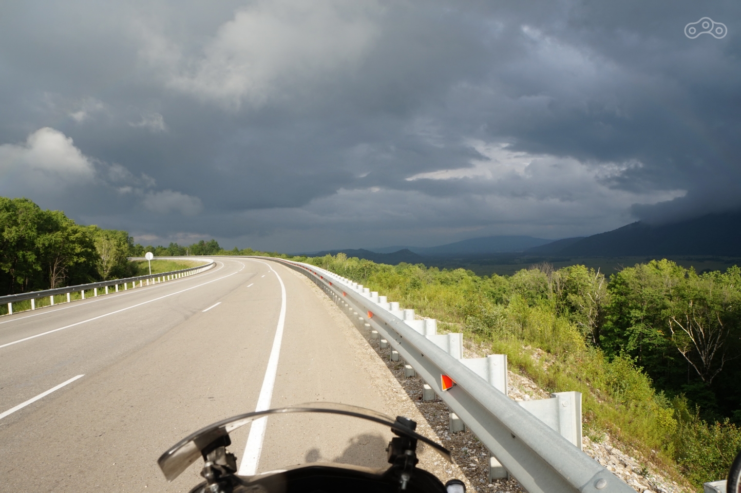 Днем 14-го августа мы с Генри поехали в Корсаков уже на кран-балке, где на въезде нас уже ждал Сергей из местного клуба Амигос. Наверное, мой рассказ выглядит немного нелепо, ведь я хоть и еду одна, но постоянно получаю поддержку от мотоциклистов, но в этом и есть Россия.
