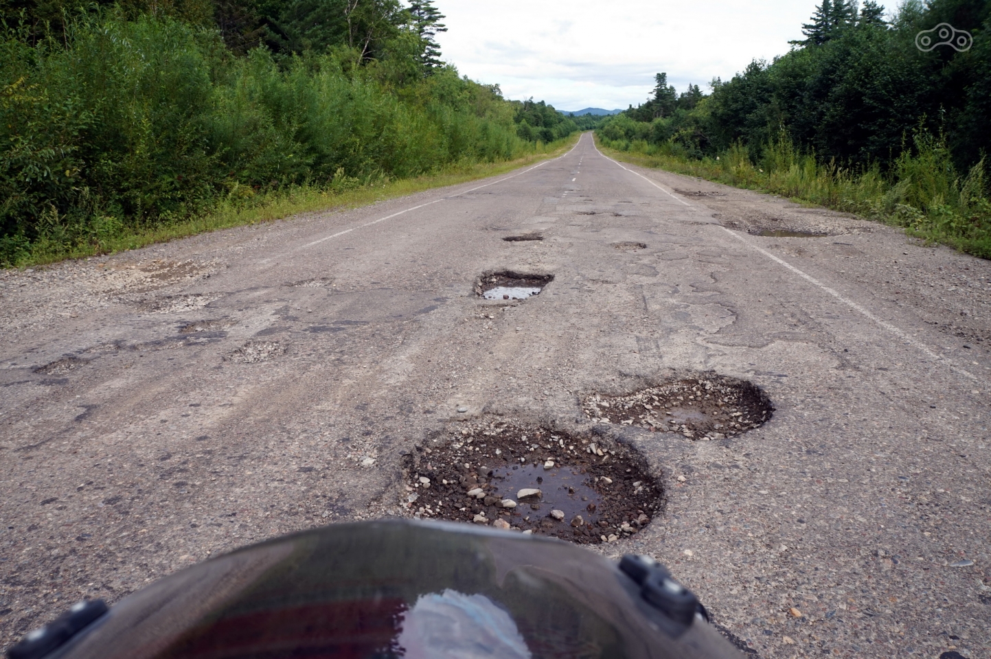Отрезок от Лидоги до Ванино тоже необычный. Пейзаж вокруг всё красочней, а вот дорога являет собой квинтэссенцию всех российских дорог – и внезапные ямы, и волны, и гравий и туман на перевалах. Но красоты вокруг смягчают впечатление от самой дороги.
