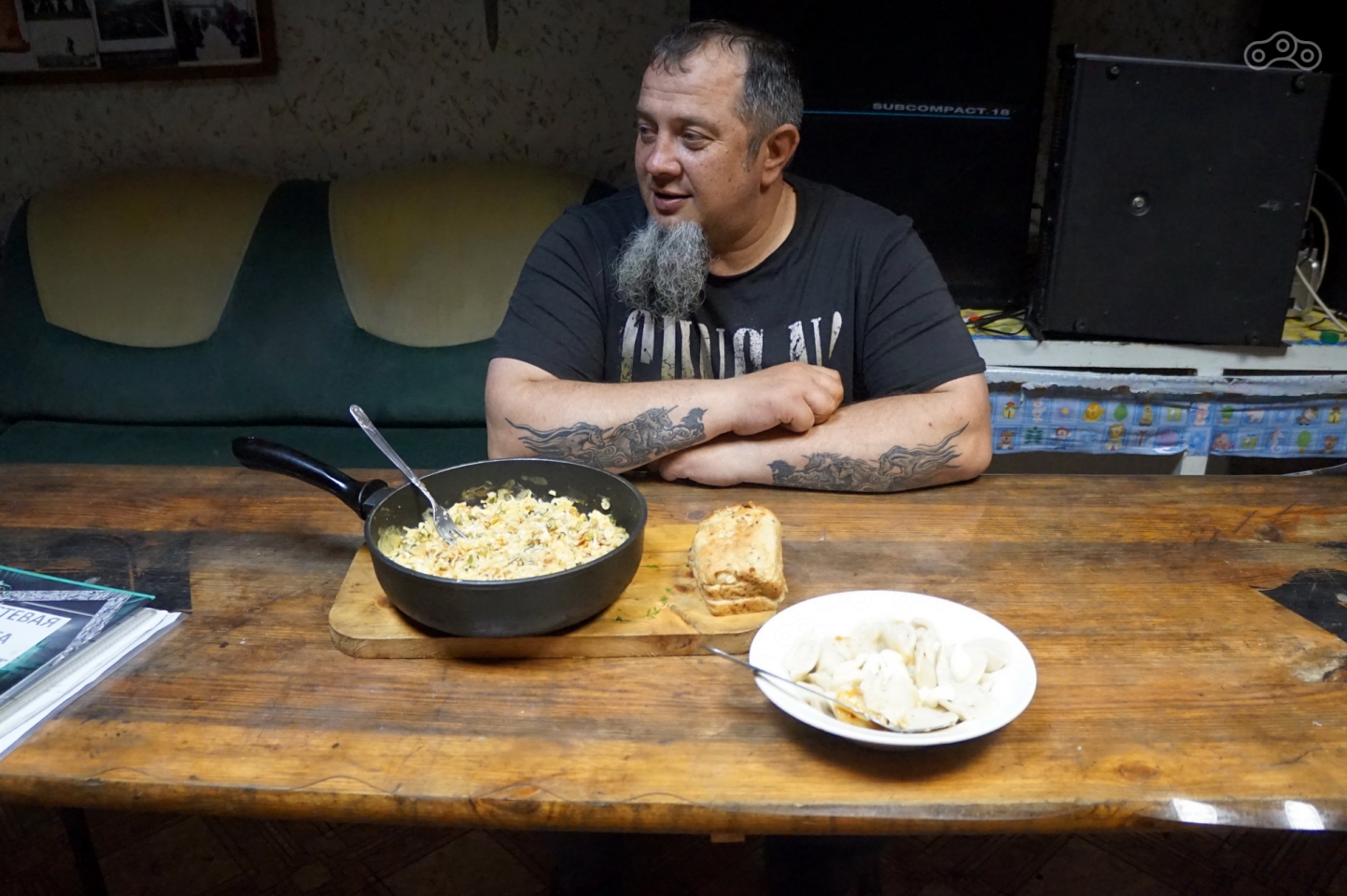 Руслан проводил меня на байкпост, познакомил с Левой и Максом, и приготовил вкуснющий ужин. Очень душевные ребята, общаемся до сих пор.
