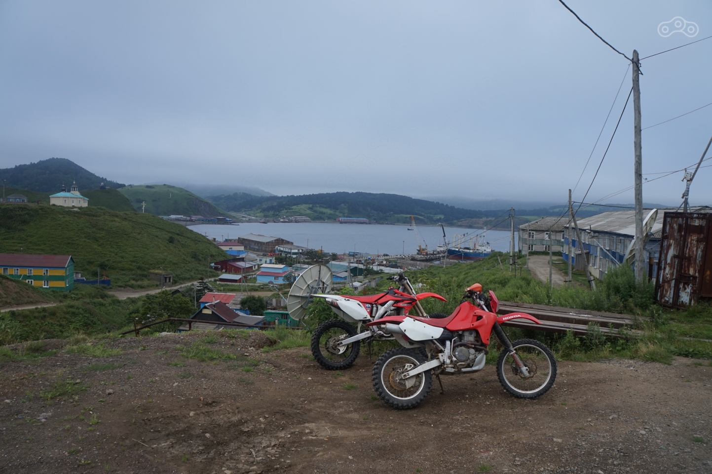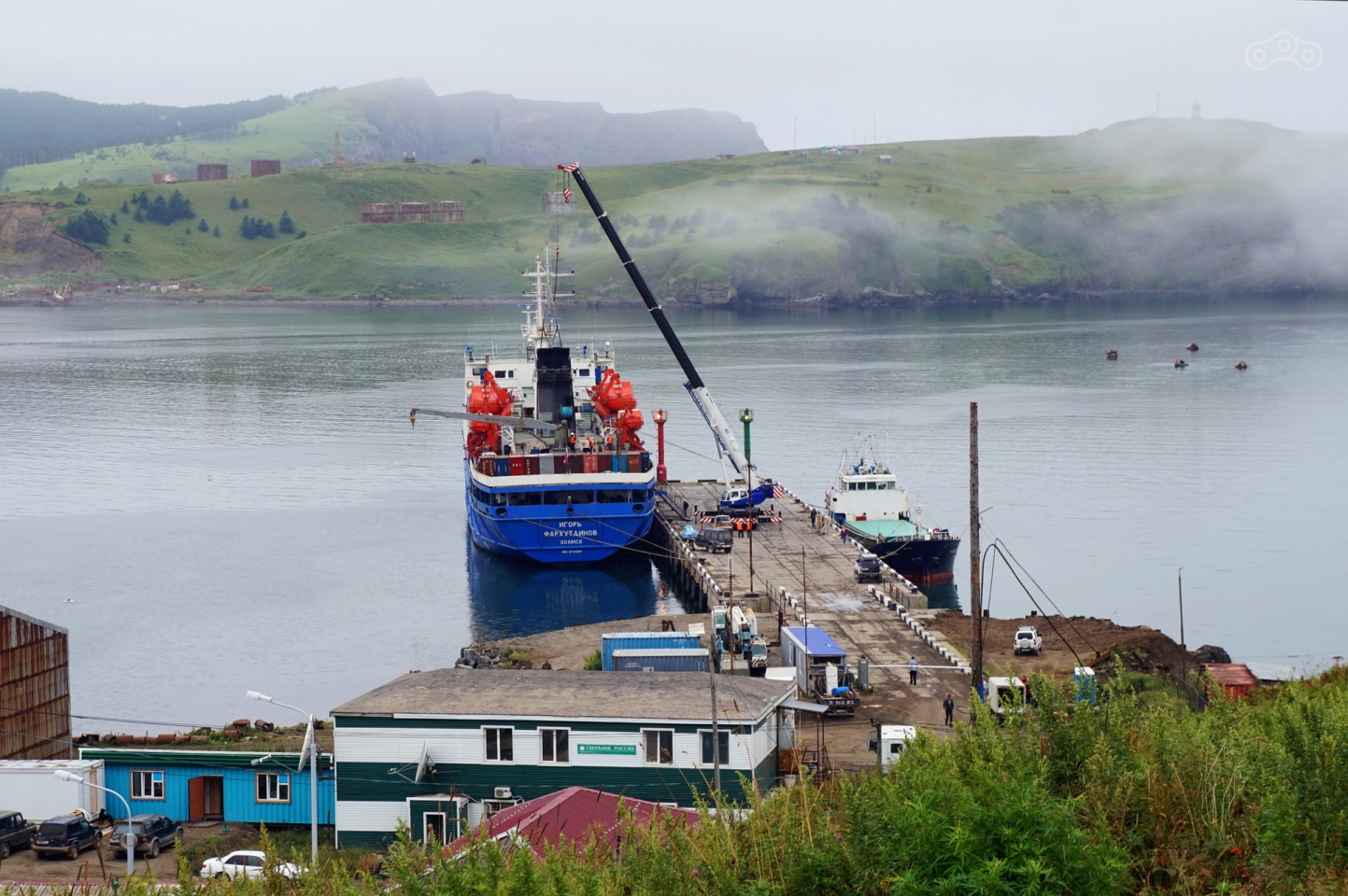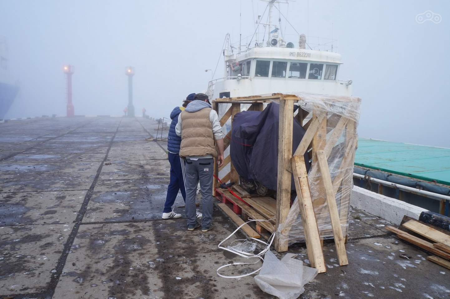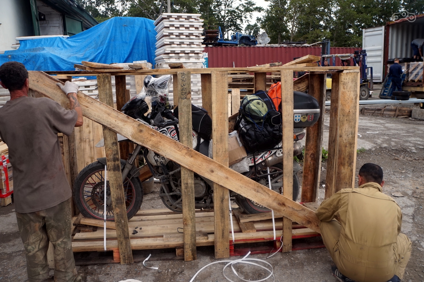 Паром идет почти 30 часов, в зависимости от погоды. На Шикотан мы прибыли вечером 16-го августа. При подходе к порту начала ловить связь, и я созвонилась с Максимом – с ним я списалась несколькими днями ранее, попросив помочь при распаковке мотоцикла. Так как мне в этой обрешетке еще предстояло везти Генри обратно, а затем и в Москву, то распаковать надо было аккуратно, только с одной стороны, а затем выдергнуть груженного Генри в бок, чтобы достать.