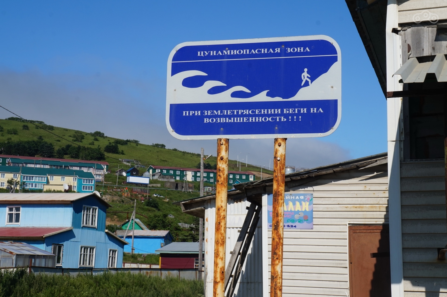 На Шикотане всего 2 населенных пункта - с. Малокурильское и Крабозаводское. Длина острова всего 27 км, ширина от 5 до 13 км. Население около 3000 человек. До 1994 года населения было почти 8000, но очень многие уехали после Шикотанского землетрясения и цунами. Теперь по всему острову можно увидеть таблички, предупреждающие о том, что при цунами надо бежать наверх, а здания наверху обозначены, как сейсмобезопасные. На острове расположен рыбзавод, именно сюда приезжают временные рабочие, есть современная больница, почтовое отделение, филиал Сбербанка, пожарная станция, полиция, кафешки и несколько магазинов. Негусто, но всё необходимое для жизни. Заправку я не обнаружила, но есть люди, у которых всегда есть бензин. Цены, правда, негуманные, но что поделать – «северный коэффициент». Я с собой привезла канистру, которой мне как раз хватило, чтобы покататься по острову.