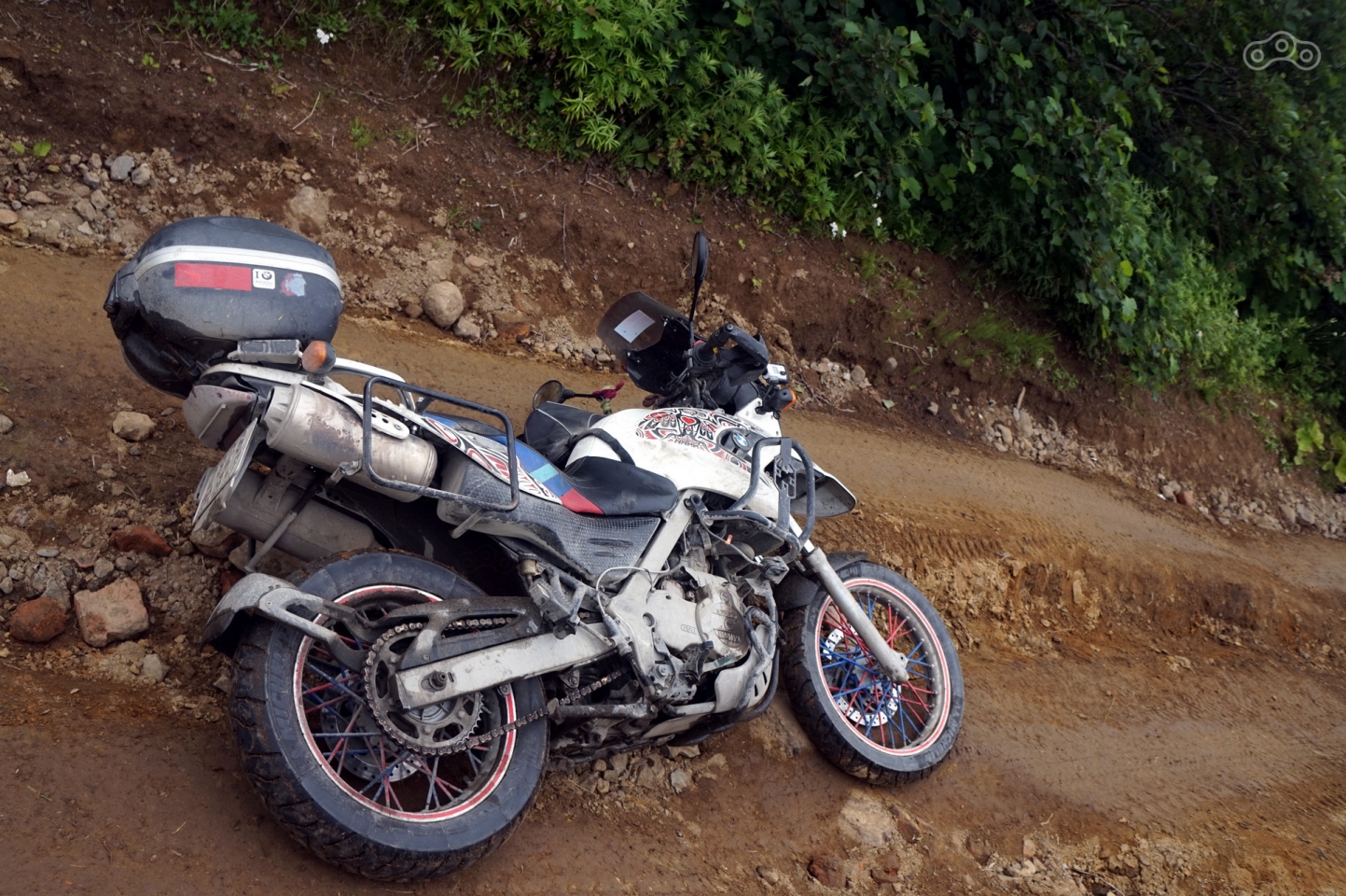Утром отправляемся в путь. Женя – на Митцубиши Паджеро, а я следом на Генри. Мой гид предупредил, что будут реки по дороге, придется проходить броды. Внутри – смесь страха, адреналина, жажды приключений и предвкушение близкого достижения цели. Еще пару недель назад, увидев бы такую дорогу, я немедля развернулась бы и вернулась на асфальт. Но сейчас азарт сильнее страха. Первыми идут лужи – грязножелтые, непонятно, что на дне. Проезжаю медленно, чуть поскальзываюсь. Значит глина и надо проскакивать быстро. Учусь в процессе. Следующие проезжаю гораздо уверенней. Дорога вся кривая, каменистая, но Генри молодцом. Еду я на дорожной резине, но сбалансированность мотоцикла позволяет ехать и по такой поверхности.
