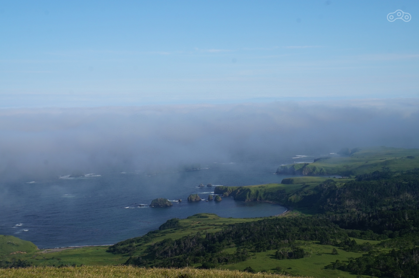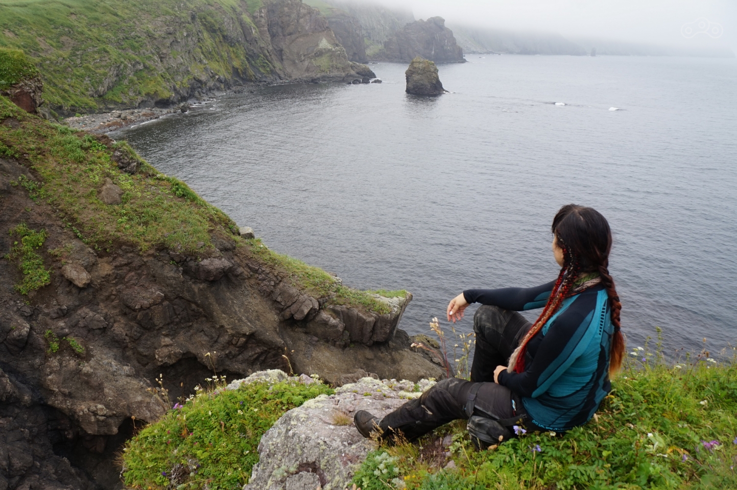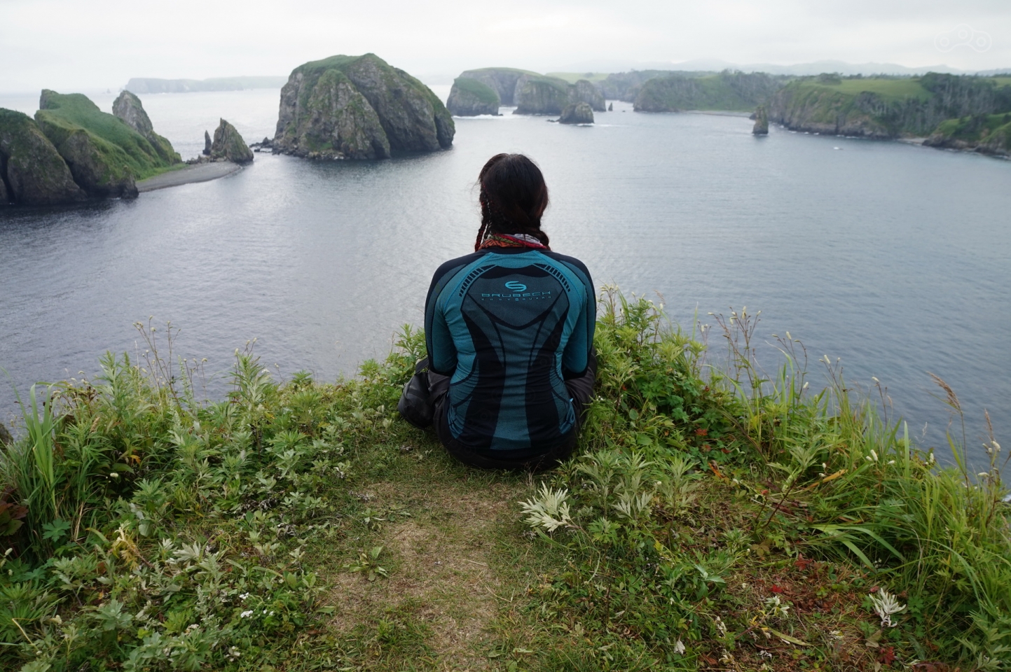 Несколько дней езжу по разным бухтам и сопкам. Особенно хочется отметить мыс возле Малокурильского. Туда добрались на закате. Это настоящая – Вершина Мира. Под тобой стелются облака, горизонт залит розовым светом, виднеется вулкан Тятя на Кунашире и я верю, что вижу даже Японию, хоть краешком глаза.