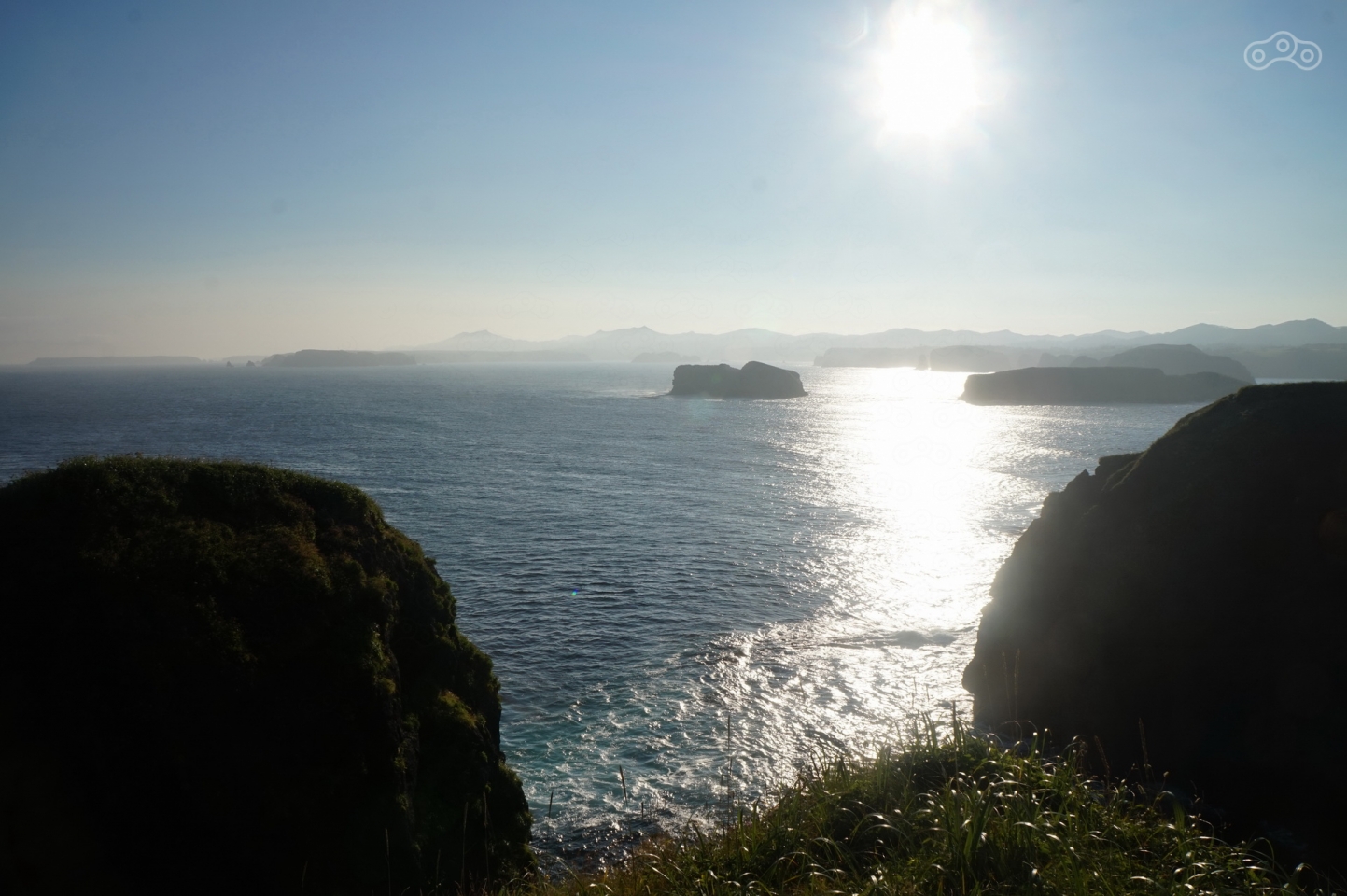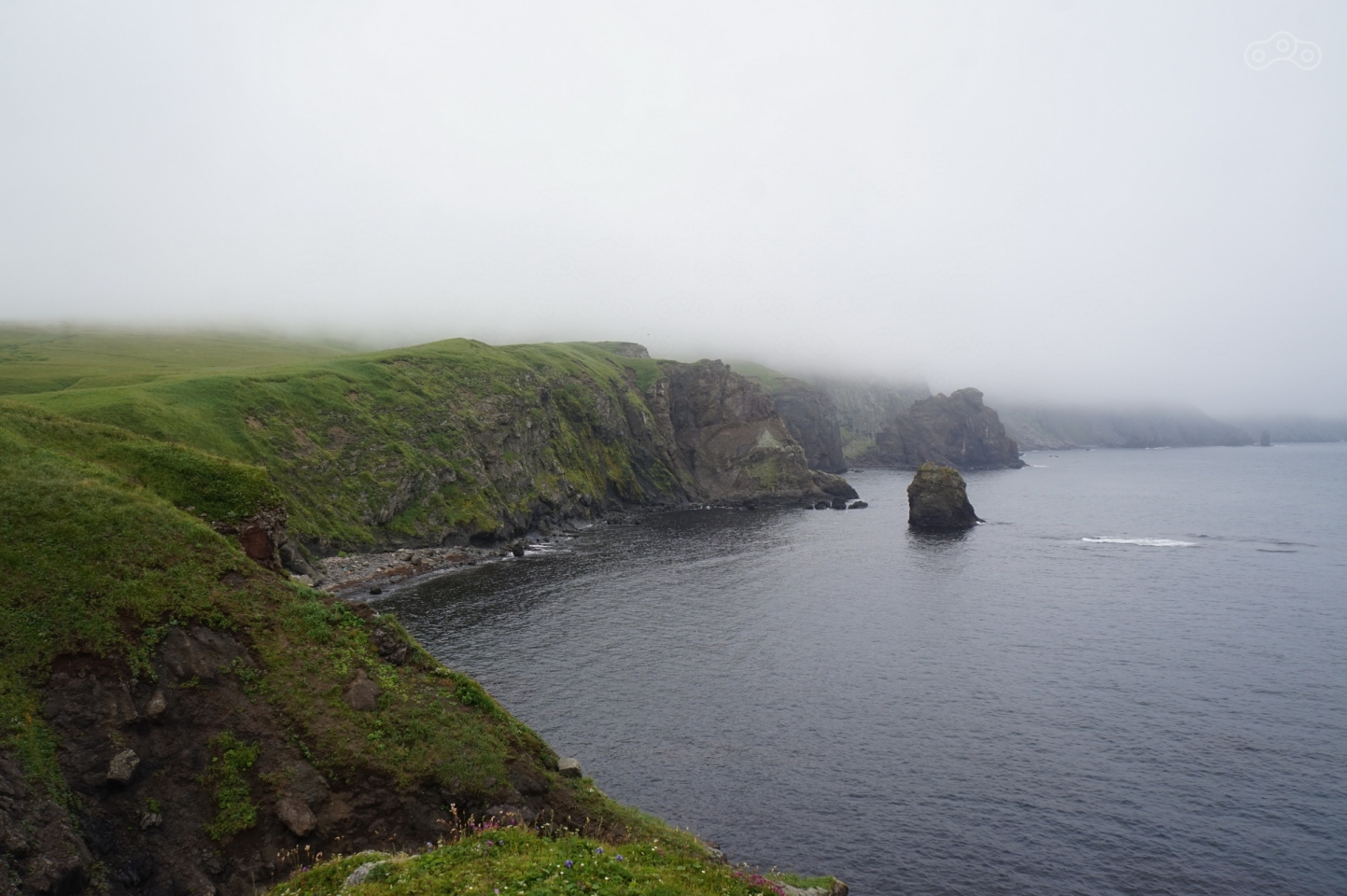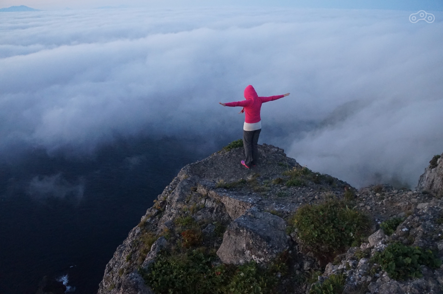 Несколько дней езжу по разным бухтам и сопкам. Особенно хочется отметить мыс возле Малокурильского. Туда добрались на закате. Это настоящая – Вершина Мира. Под тобой стелются облака, горизонт залит розовым светом, виднеется вулкан Тятя на Кунашире и я верю, что вижу даже Японию, хоть краешком глаза.