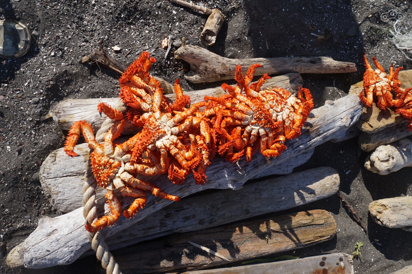 Теперь пришло время крабов – их попалось очень много, их просто закидывают в морскую воду и варят, пока они не станут оранжево-красными. Вкуснотища! Одного краба я даже довезла из Южно-Сахалинска мужу домой, правда он немного подтаял и запах был во всем самолете. Но муж остался доволен.