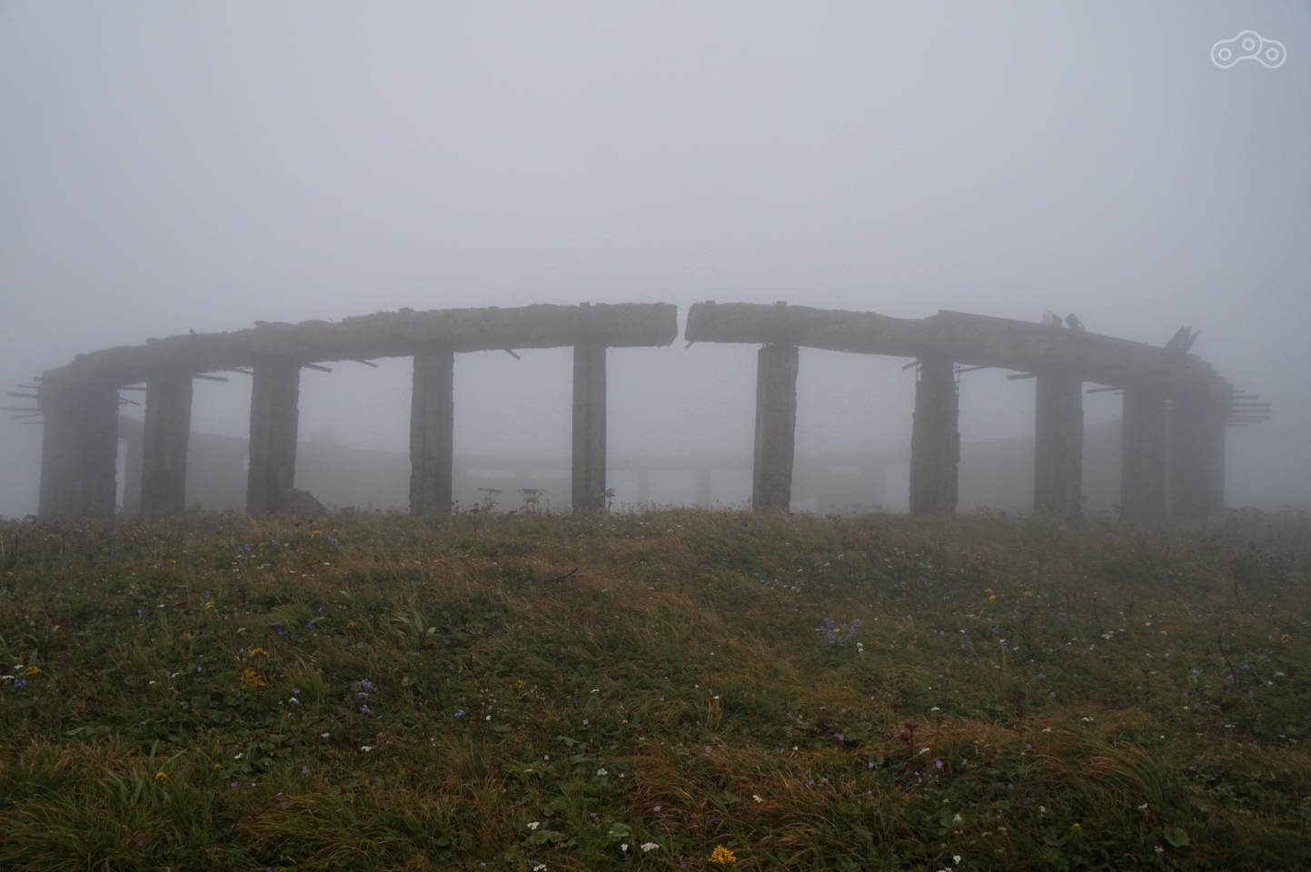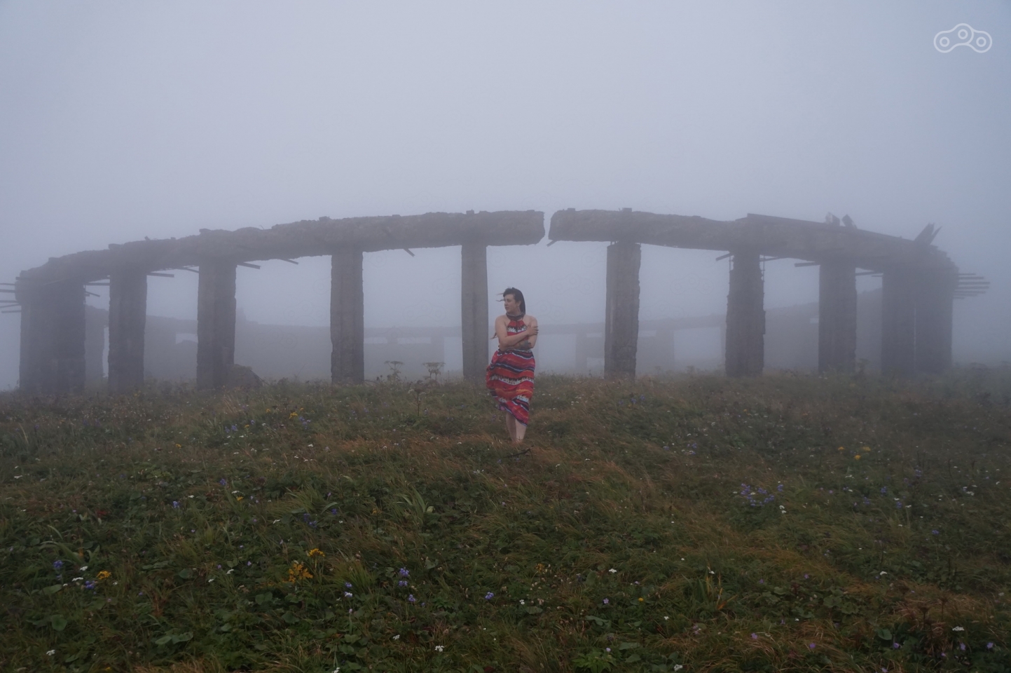 В предпоследний день едем на «Четырку», так местные называют гору Шикотан, высота которой 412 метров. Она самая высокая на острове. Вершина горы вся окутана туманом, но развалины военных локаторов в такую погоду дают ощущение того, что я как минимум очутилась в Стоунхэдже.