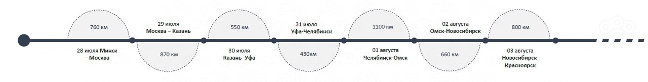 Километраж 12 015 км (с учетом перегона из Москвы в Минск). 31 день.