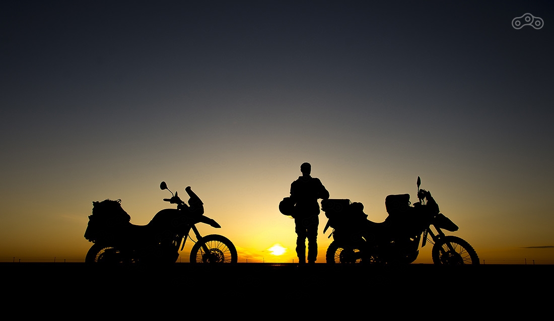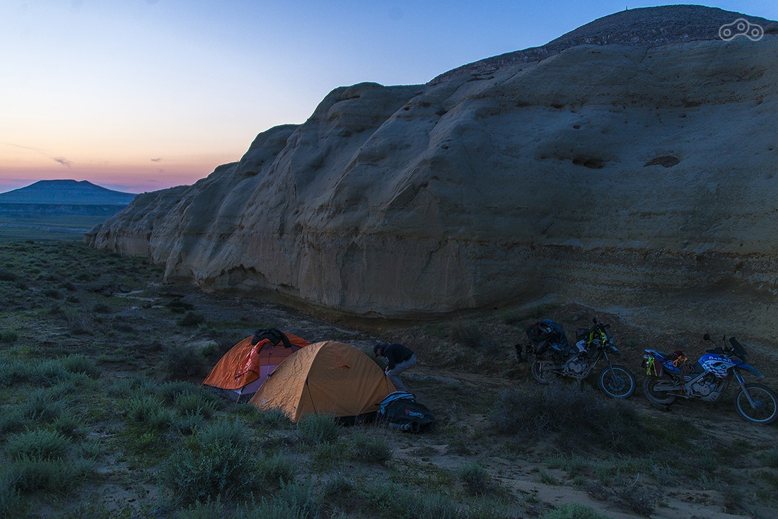 На закате возвращаемся в первую точку, откуда открывается самый фантастический вид и разбиваем здесь лагерь. Вечером сюда приезжает еще два мотоциклиста из Москвы (привет Ивану и Ярику). Иван учит нас теории управления мотоциклом на бездорожье :) и на следующий день нам это сильно пригодилось.