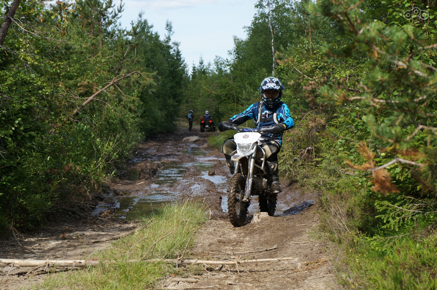 Что тут делать на питбайке? Да все тоже самое, с поправкой на действительность Карелии: красивейшая природа, эдакий микс мхов, лишайников, камней, черники и деревьев, обилие грейдеров (асфальта в этих краях почти нет), куча дорожек, троп, направлений, интересный ландшафт, не слишком глубокие броды местных речушек, идеальная локация для пита и не только. Вместе с ним с нами в путешествие отправилось еще и два квадроцикла Yacota, сопоставимых с питом по динамике и проходимости: 200 и 250-кубовые моторы, задний привод, в такой компании не будет скучно ни на пите ни на квадре.