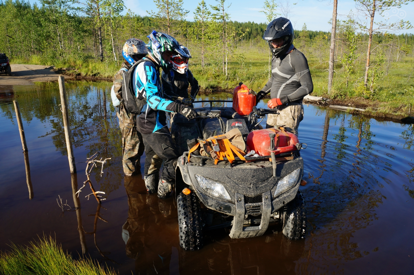 В отличии от машины, утонувший квадроцикл вытащить на отмель можно даже вдвоем.