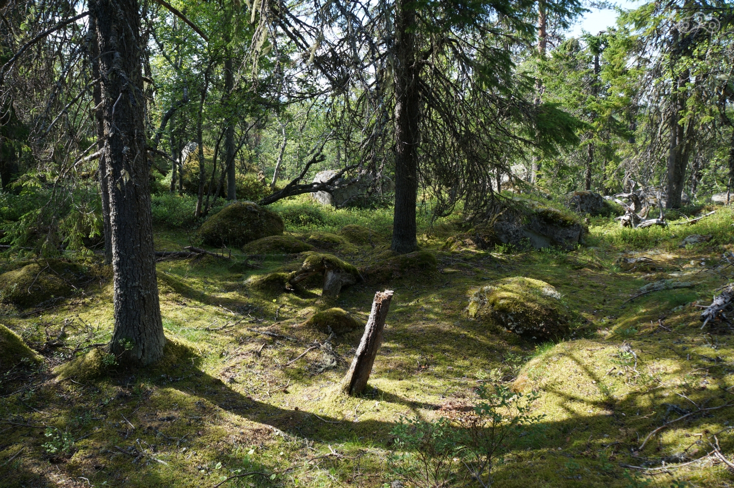 И пусть магии места никто из нашей компании так и не ощутил, открывшийся вид и прохладный ветерок, сдувавший насекомых и духоту, заставили задержаться тут на какое-то время. Вот он, настоящий север! Камни, карликовые деревья, мох и неимоверное количество кустов черники.