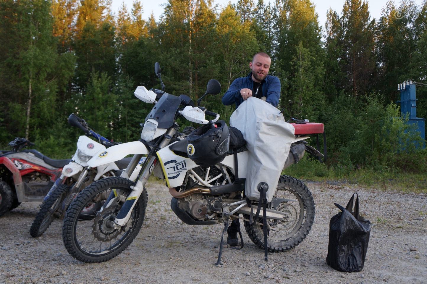 Тогда же к нам присоединился и Виктор Антонов, возвращавшийся из своего неимоверного путешествия по северу на Husqvarna FE701. Четыре тысячи на эндуро выветрят энтузиазм даже из самого прожженного фаната мотодальнобоев, так что Виктор, узнав заранее о нашем приезде, решил отправить мотоцикл в Москву с нашим караваном, а сам дернуть домой на поезде, с койкой и чаем в подстаканниках. Почему бы и нет! Признаться, однажды я так делал и сам.