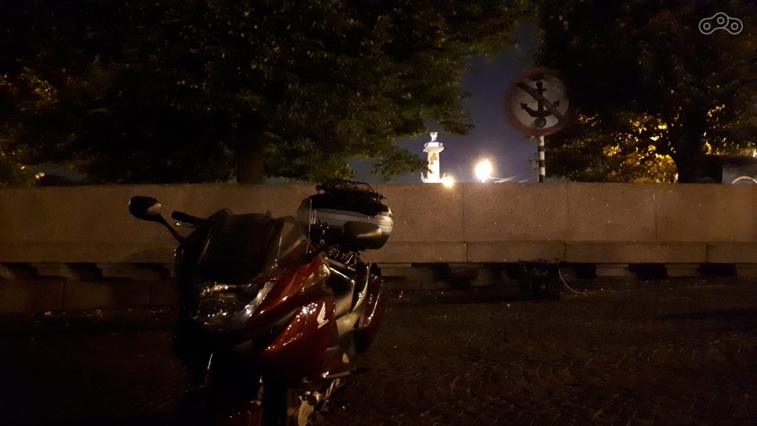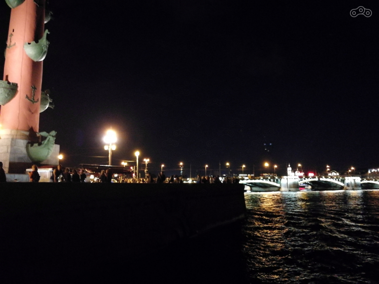 Ну и наконец Питер, не КАД а просто какой-то проспект в промзоне. Немного похоже на Перерву, тепло после трассы и как-то.. буднично что-ли. Впрочем первое впечатление оказалось обманчивым когда мы доехали до смотры… стрелки) В Питере народ собирается на василеостровской стрелке. Почему кляты москали попёрлись туда? Потому что у нас обломалась бронь — у людей прорвало трубы а запасной квартиры просто не было. Питер, 12 часов ночи, мы без жилья. Атмосферность нарастала.