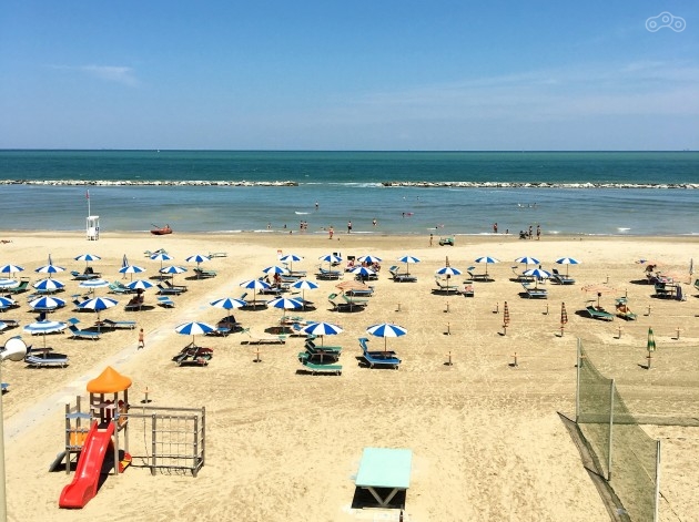 На следующий день наши мотоциклы мчались в сторону моря — в курортный город Римини. Немного цифр: отель у моря в Римини нам обошелся примерно в 5000 рублей на троих, четыре больших куска пиццы и две банки колы на обед — 12 евро; персики в супермаркете — 2,5 евро/кг, вино — 3 евро.