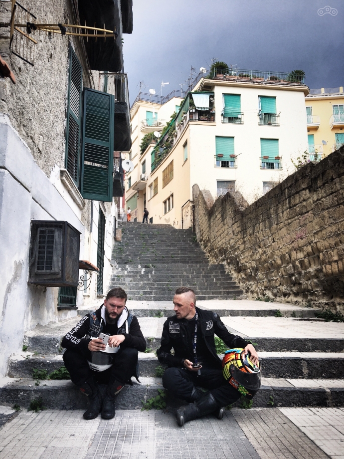 На Везувии круто, я наконец-то увидел знаменитую поляну, где когда-то располагалась армия Спартака, и сходил к южному склону, откуда он спускался по виноградной лозе. На обратном пути Кука, избегая столкновения с автобусом на узкой дороге серпантина, немного приложил мот, но без последствий.